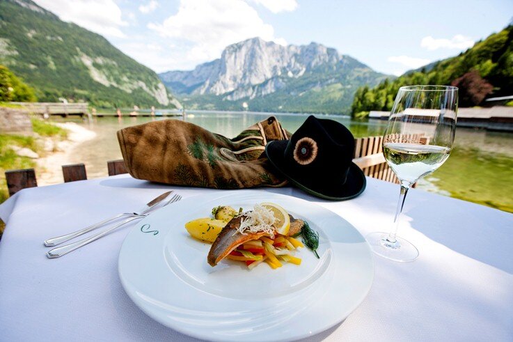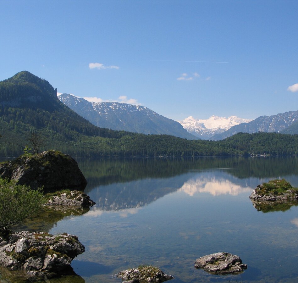 Along the way, there are fantastic views of the lake and the impressive Dachstein massif. However, it is not permitted to descend to the Seewiese hunting lodge. The return journey follows the same route.