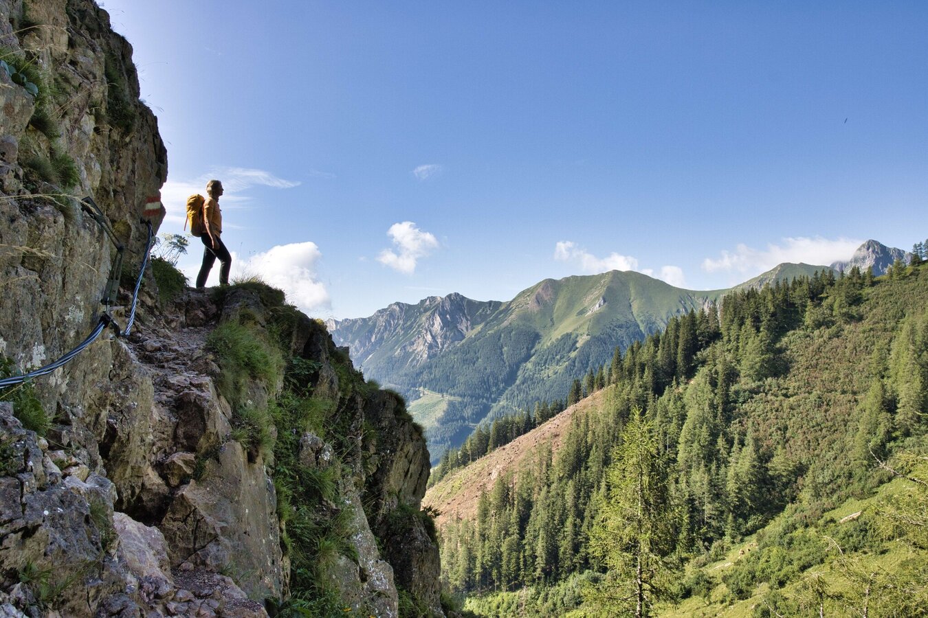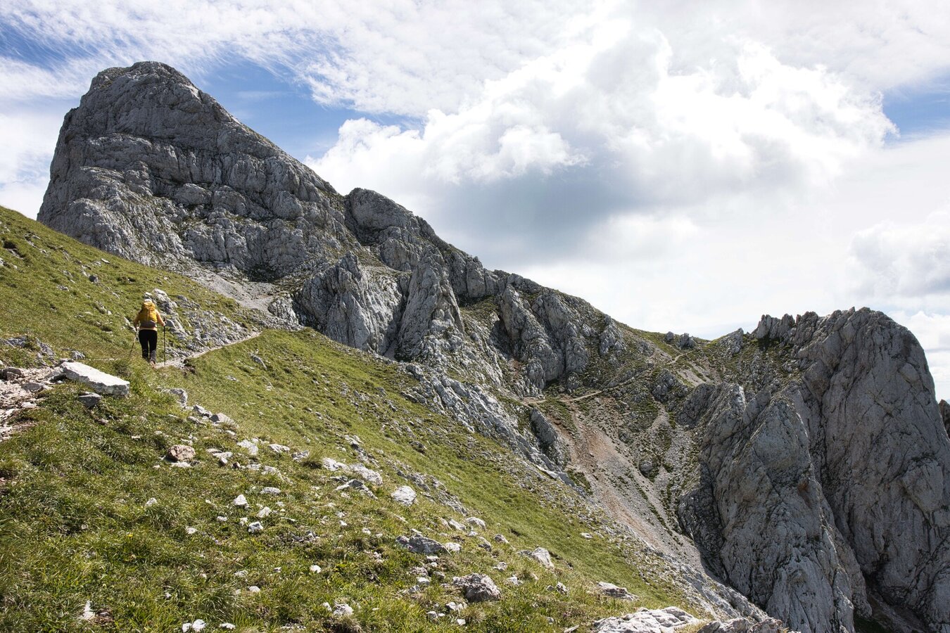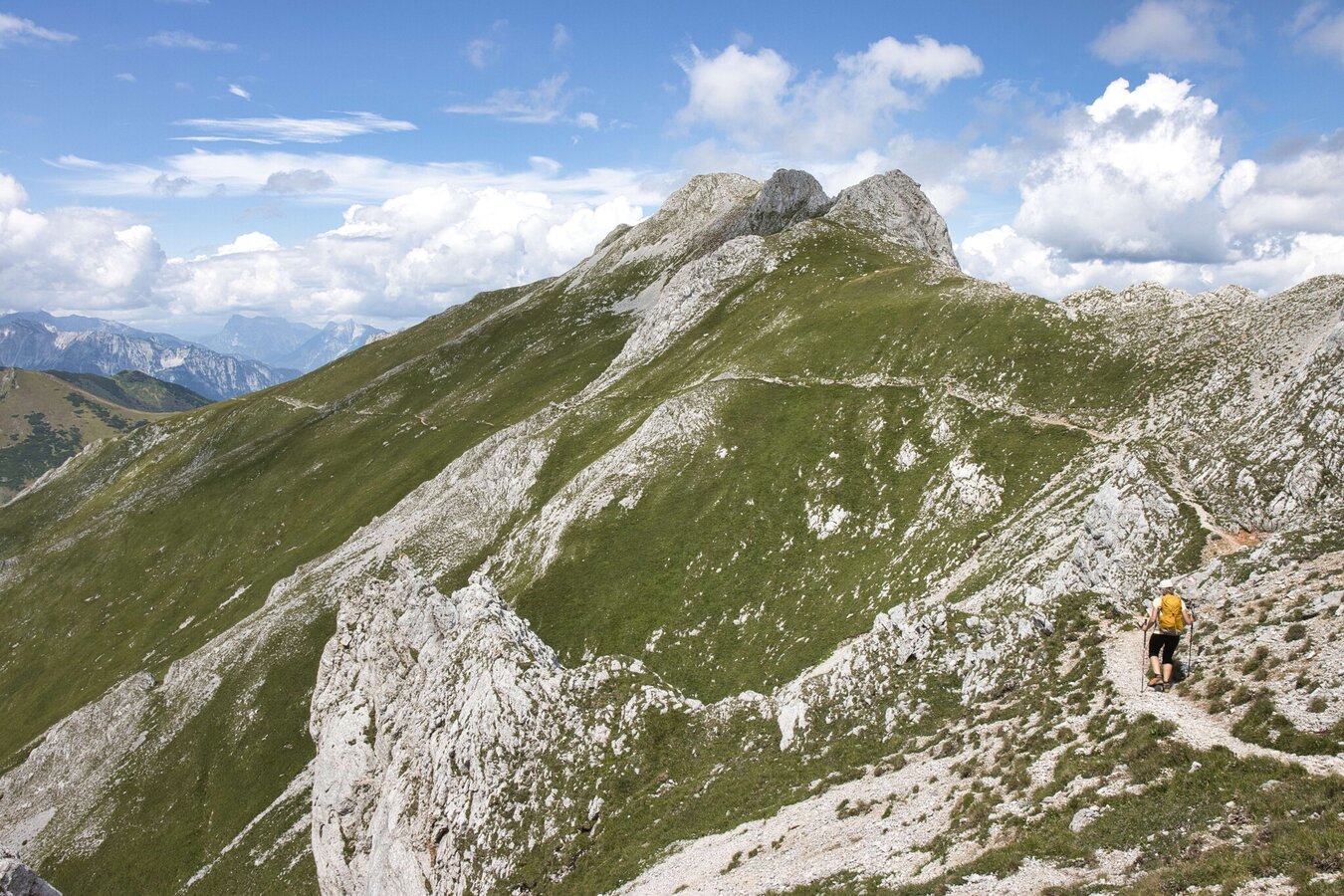 An alternative ascent is possible with the Einser chairlift (www.praebichl.at) to the “Die Polsterei” hut (www.diepolsterei.at). From there, hiking trail no. 873 leads over the Polstergipfel (1,910 m) to the Hirscheggsattel