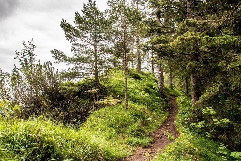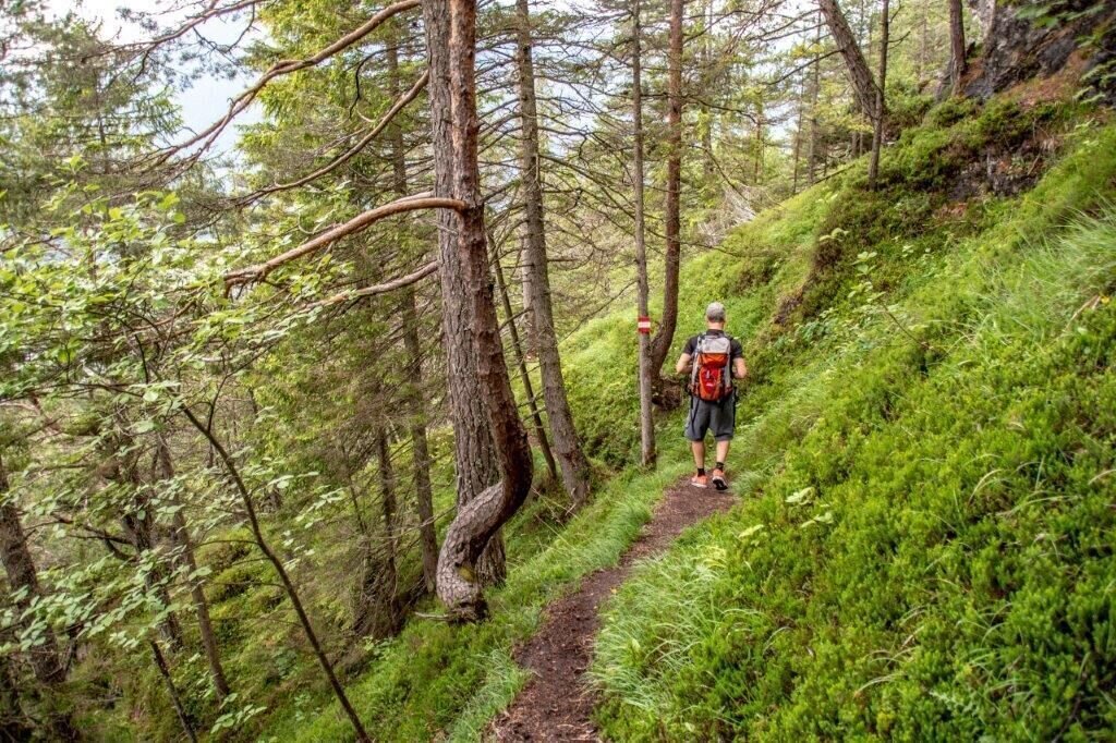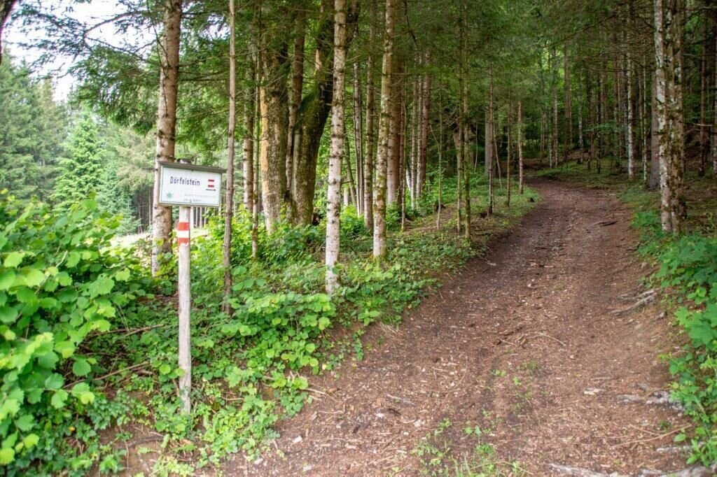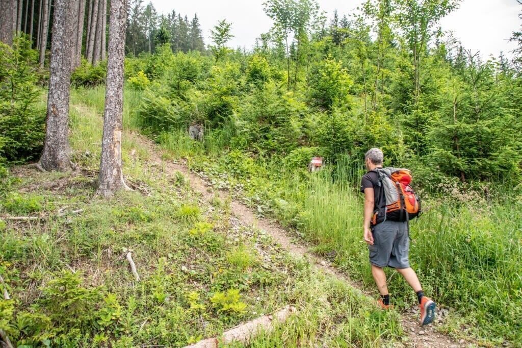 The trail leads through the Hall district along forest roads and a beautiful path through the forest.
