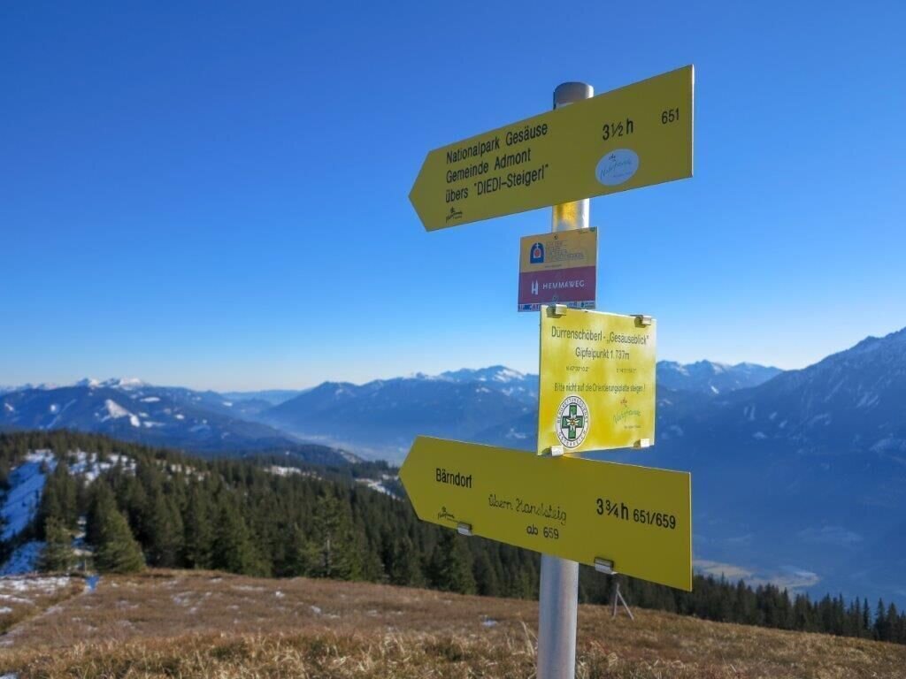 We hike along trail no. 651 from Schloss Röthelstein via Hubereck and Spießkogel to the Dürrenschöberl – a stunning panoramic peak overlooking the Enns Valley and surrounding mountain ranges.