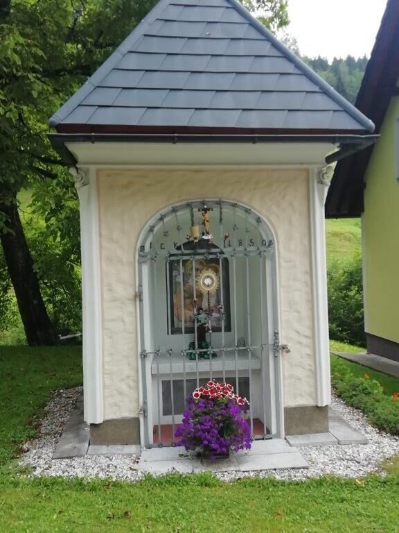 From the starting point you walk past on the left in the direction of the church. You walk along the road towards the main road. Turn left and pass the Schuller car dealership. Behind the last house there is a small chapel. Continue up the road and you reach a fork where there is also a chapel. Here you turn right and follow the path until you reach the main road again. At the main road, one continues on the left, passing a shoe shop. At the junction, where you reach the geovillage, turn right. Continue along the path and pass a chapel. At the fork in front of the horse farm, turn right. At the next fork in the path, turn right again. You pass the elementary school Gams and finally, after a walking time of about 1 hour, you are at the starting point.