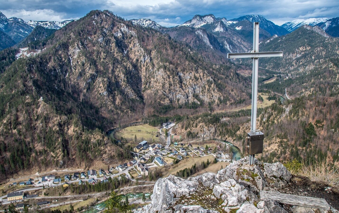 Starting from the large signpost next to the Barbarakirche Wildalpen, you go direction Salza, where you cross the old wooden bridge, above the campsite directly to the entrance of the path to the Mitterberg. Follow a steep and serpentine path and reach a ridge. In the area of the last 50 meters the path becomes very steep again. The plateau at the summit cross invites you to a well deserved rest.