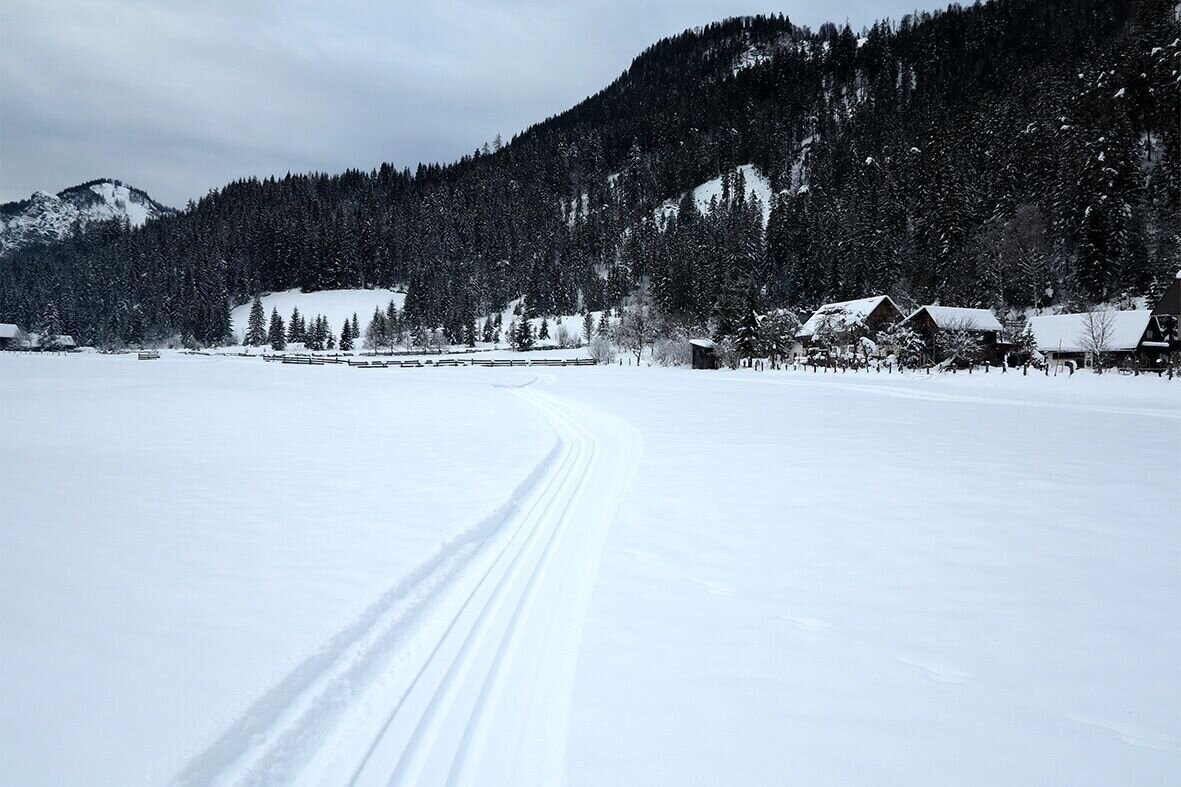 The relatively easy Sunnseitrunde trail runs along the valley floor with a double classic track and a skating track up to 6 metres wide.