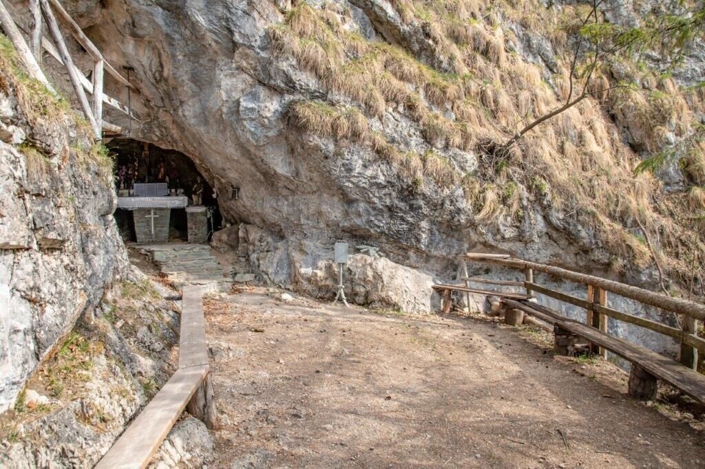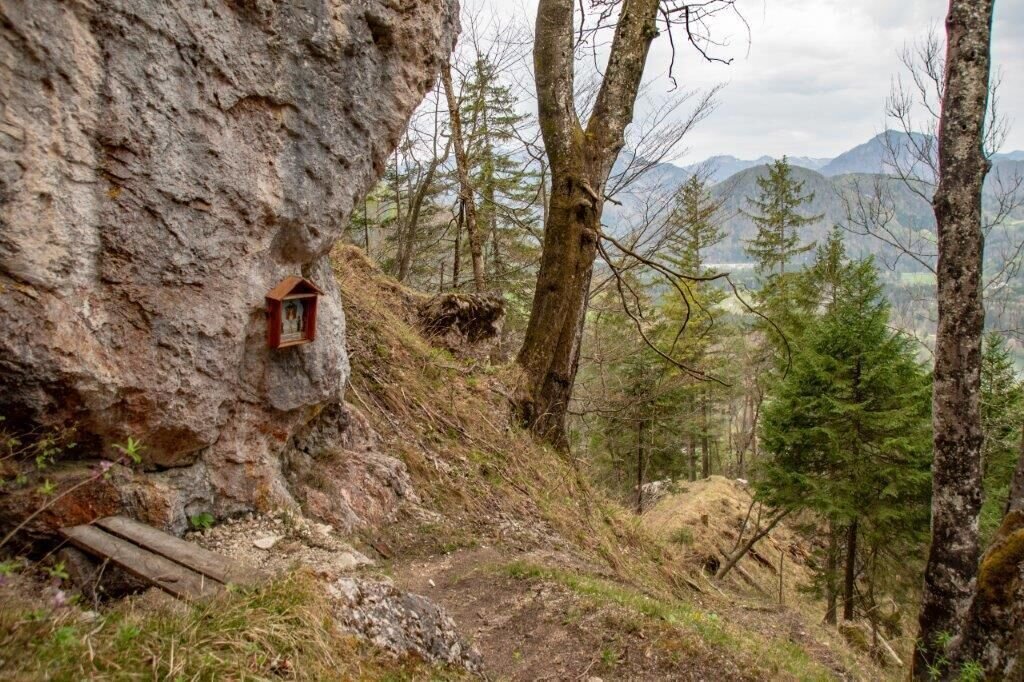 From the Kendlreith a narrow path leads in steep serpentines up the Dietrichskogel. After about 1 hour walking time you reach the grotto and can stay there for a while.