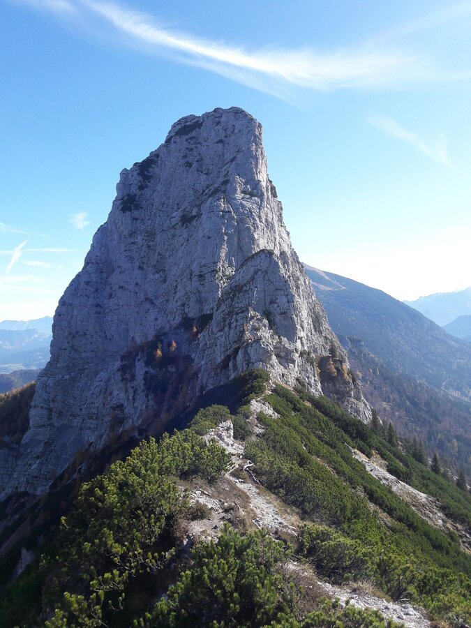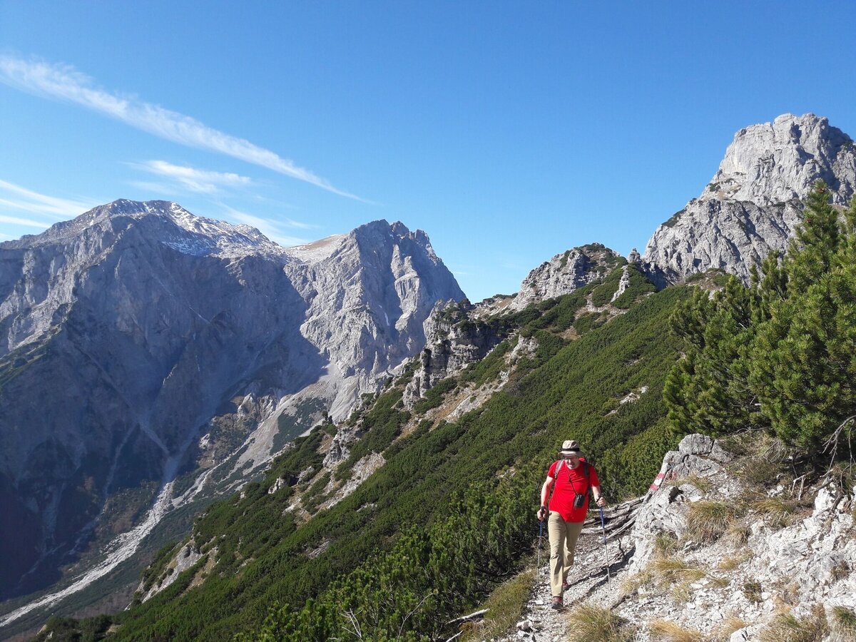 The via ferrata lives up to its name and it is therefore absolutely necessary to have a helmet and harness with you. After the exit, we follow the ridge to the spacious summit, from where we can already see the next destination - the Ennstalerhütte. However, full concentration and sure-footedness are also required on the descent to the hut, because even on the normal route there are still a few secured sections for a reason. At the Teufelskreuz crossroads, we rejoin the high-level trail, which leads to the Ennstalerhütte with alternating ups and downs. To get back to the starting point, we walk north at Landler Eck over the Landler Stieg'n and follow the marked trail no. 608 over the Bärensattel and several forest roads back to the Mühlbachhaus.