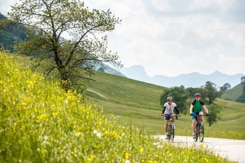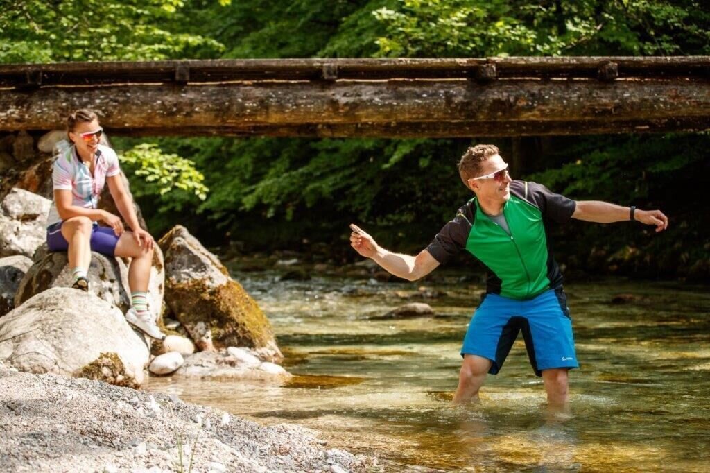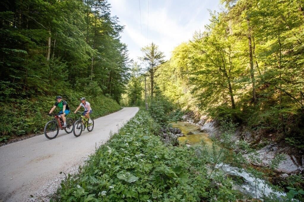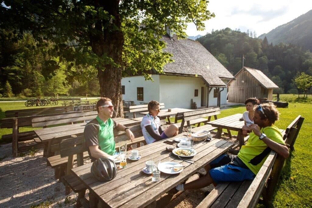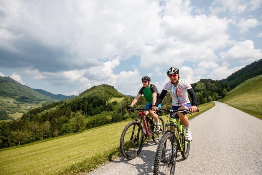 At the beginning on a gravel road downhill towards the Wurbauerkogel (refreshment stop, panorama tower), turn right and continue through the idyllic Salzatal past the National Park Lodge Villa Sonnwend to Windischgarsten.