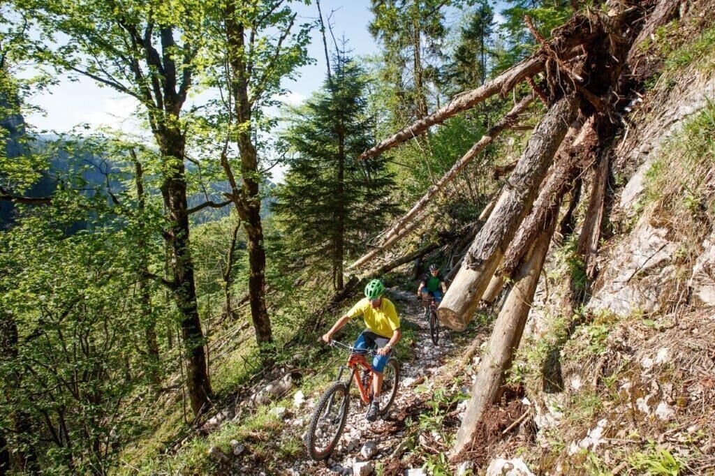 - past the Jagahäusl (refreshment stop) after 500m turn left over the Steyrsteg (push trail - single trail / old Karenweg connection Steyrtal/Garstnertal) up to the Rumpelmayrreith Alm to the Haslersgatter (origin of the Krumme Steyrling).