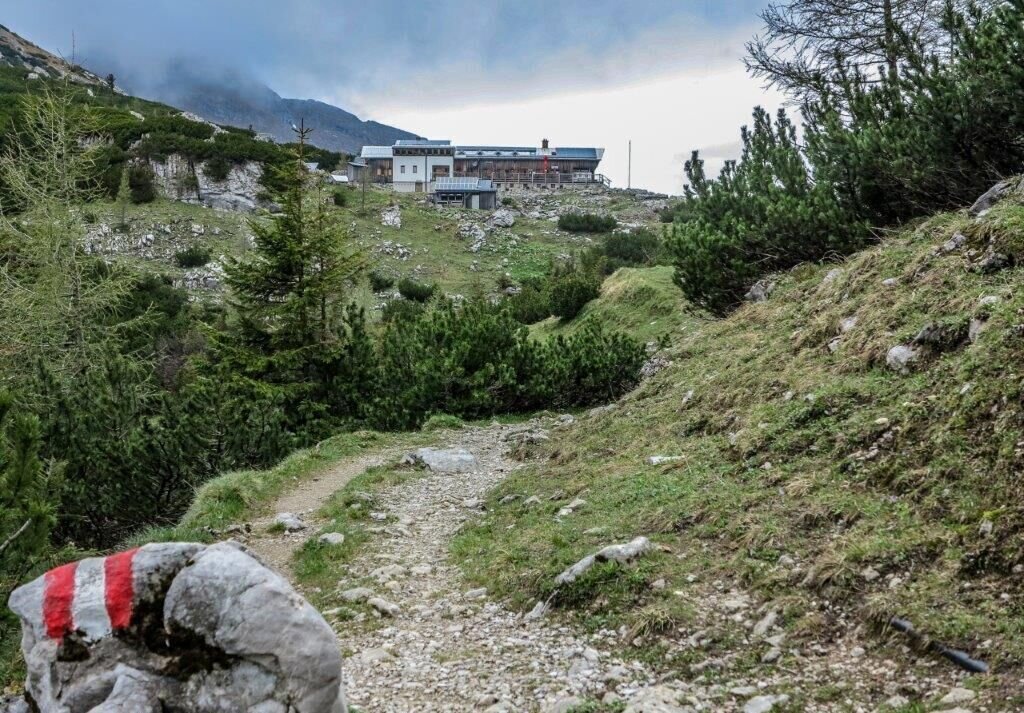 From the Hesshütte, we follow the marked trail over the Ennsecksattel. The path leads through dwarf pines and rocky sections directly to the summit of Hochzinödl. After about 1.5 hours, we reach the summit cross, where a panorama board identifies the surrounding peaks such as Hochtor, Buchstein, and Lugauer.
