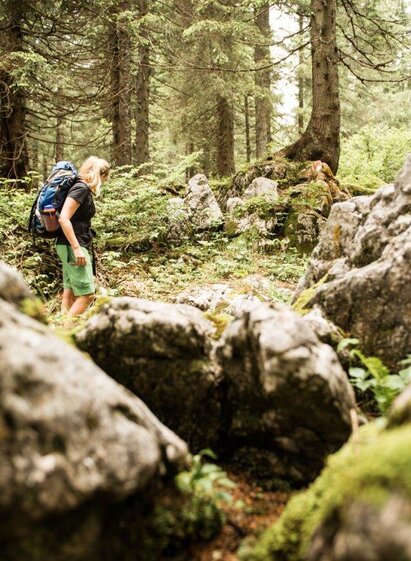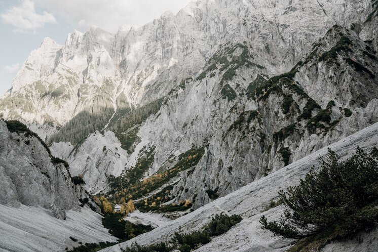 The Haindlkarhütte not only serves as a good starting point for long climbing routes through the Hochtor north face and the legendary Peternpfad, but is also a first-class stop on a circular hike. This starts at Gasthof Bachbrücke, leads along the "Wilder John" legend trail and then across a large rubble trench (the so-called "Gseng"), and the Gsengscharte of the same name, to the hut. Then it's back to the parking lot Haindlkarhütte over a dried up stream bed.