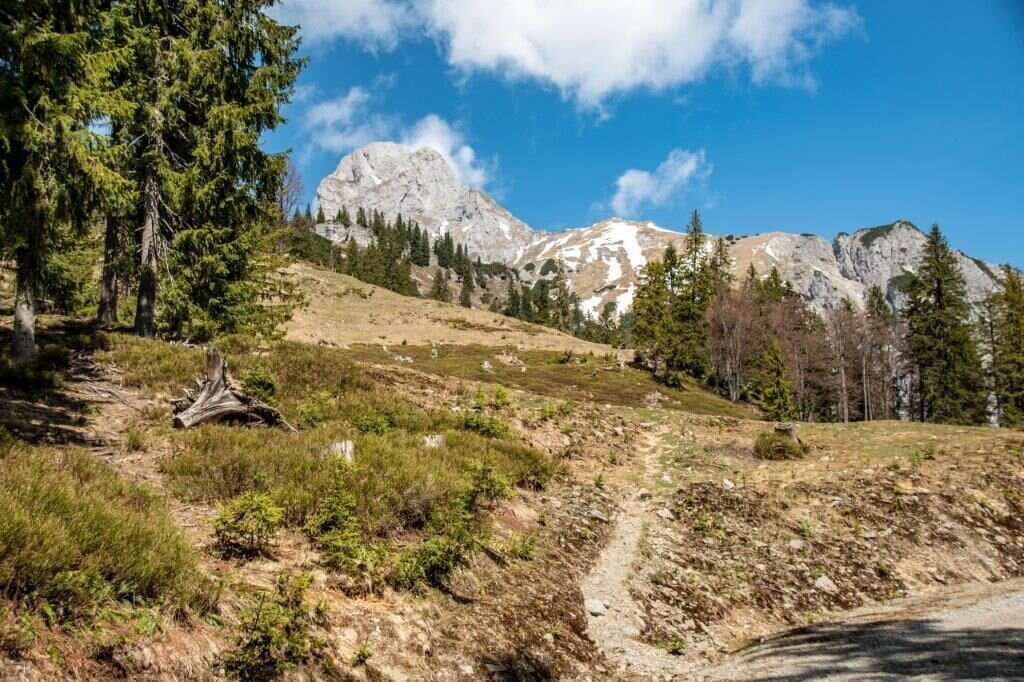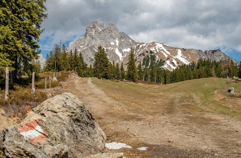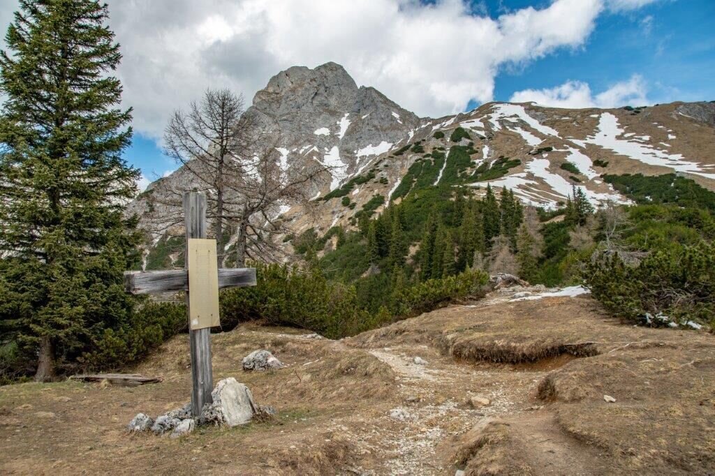 From the Mödlinger Hütte the path leads through sparse high forest to the Treffner See. Continuing slightly uphill you reach Latschengürtel. After passing the Latschengürtel you reach a beautiful high plateau directly at the foot of the mighty Admonter Reichenstein. At the northern end of this plateau you will find the Heroes Cross.