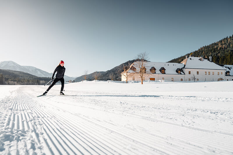 On the Kaiserau, you can't miss anything when it comes to winter. Whether skiing, cross-country skiing or walking - the high plateau is perfect for sticking your cold nose into the fresh winter air. There is a high-altitude cross-country ski trail, the only ski school in the Gesäuse, the possibility of tobogganing down from the Klinke Hütte and, with the "Sportalm", a mountain inn to warm up and try out regional cuisine.