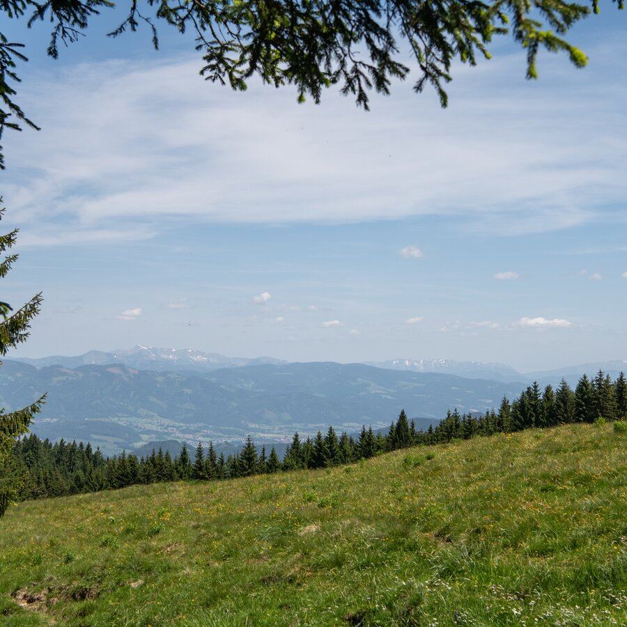 From Weitental, follow the Rabensteinwand towards Fleischhackeralm. After 2.3 km, turn left onto the path towards Heuberg.