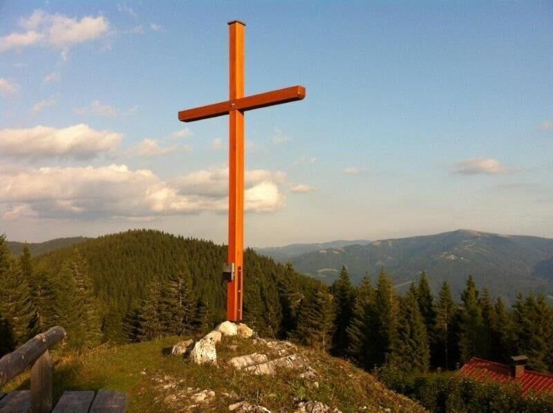 Our path now continues in a westerly direction to the Drahtekogel (here the path from the Preiner Gscheid is added) and, always in a slight up and down, to the Hohe Scheibe (small refuge, summit cross, descent to Mürzzuschlag possible). Still continuing in a westerly direction, we now descend through extensive forests and via forest paths to the so-called Windlöcher (wind holes) and the Bleiweissgrube (cave, visit possible).