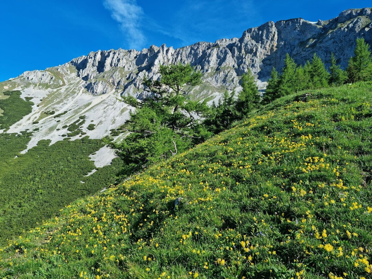 From here it goes north downhill over the Gingatzwiese and, past the Wetsflanke of the Wildkamm, to the Sohlenalm. From there it is no longer far to Niederalpl.