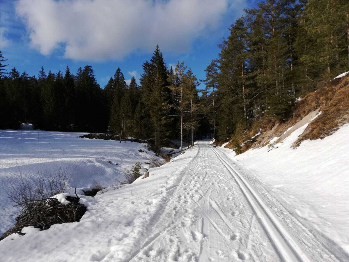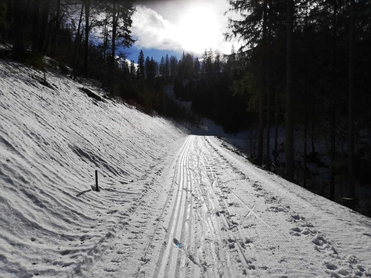 From here the trail leads north of the Wuchtlwirtin along the Ottersbach to the state border in the direction of Fadental. Arrived in Fadental, we first run along the Schwarze Walster in the direction of Hubertussee, before we turn left and return to Fadental through the Schnittlermoos road. From Fadental the trail leads us back to the Wuchtlwirtin along the same path.