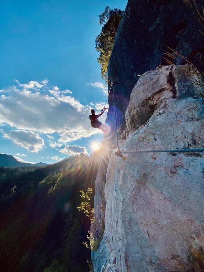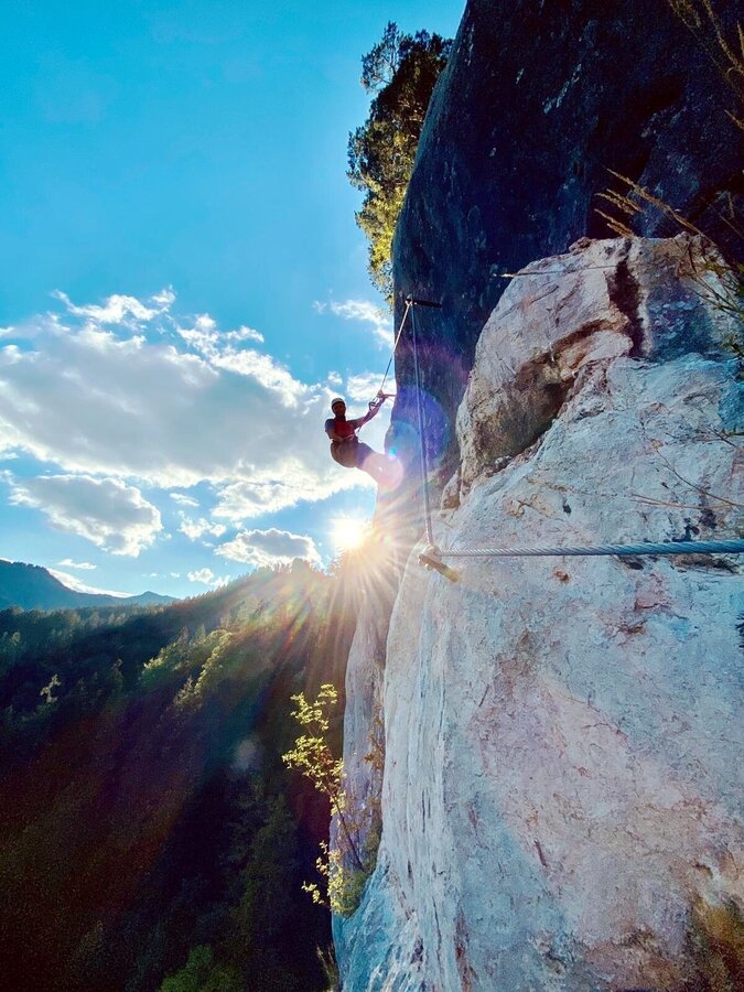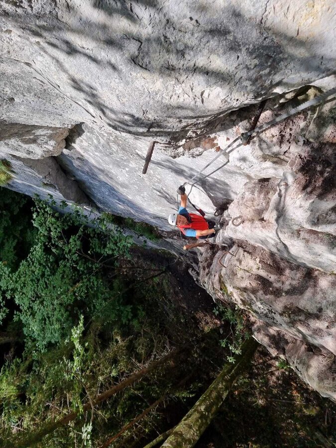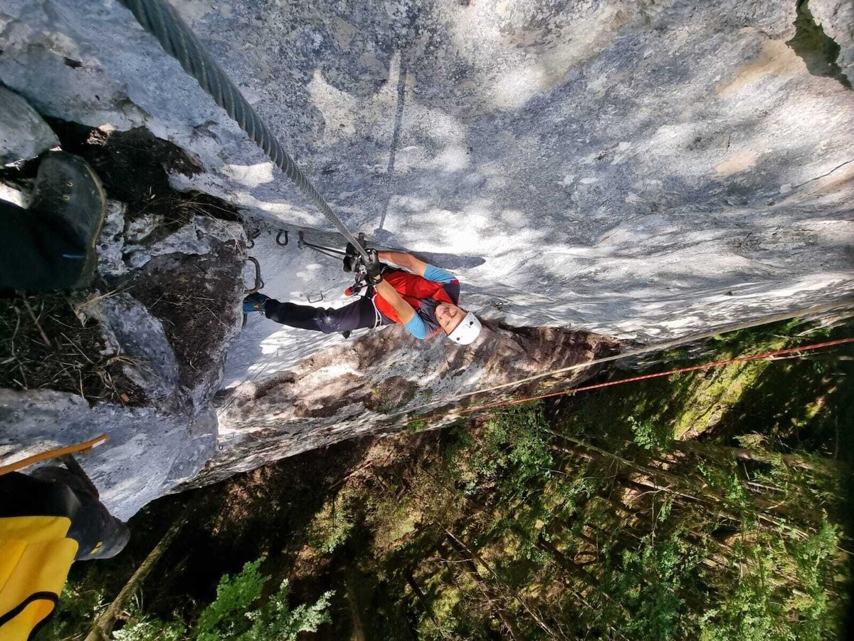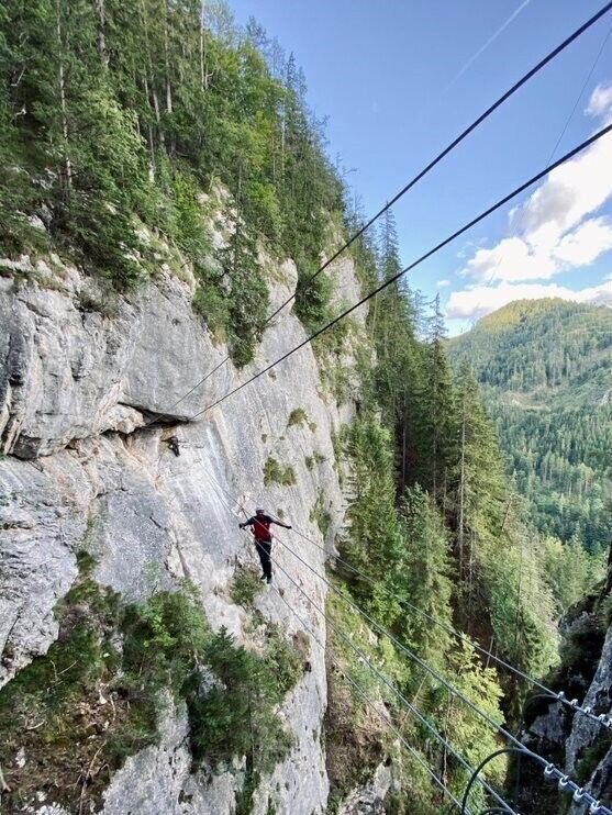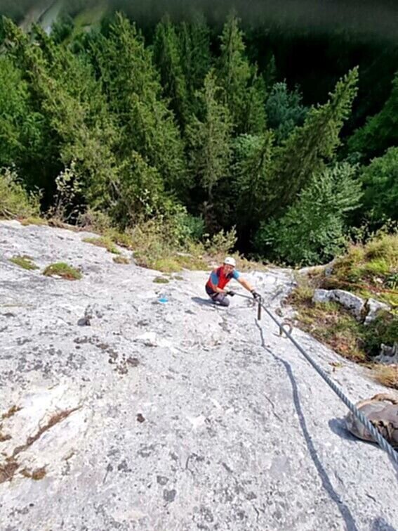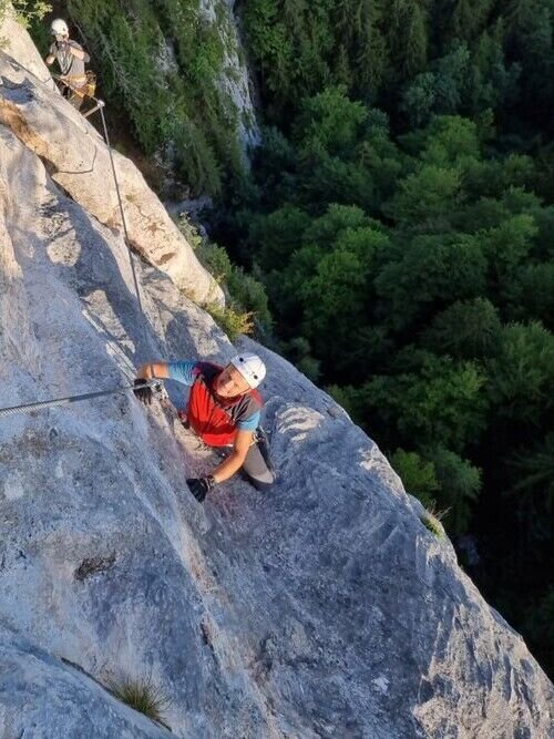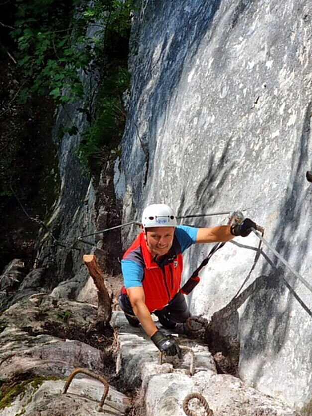 The climbing variant over Helis' incredible pillar, which was named in memory of the Neuberg mountain rescuer legend Heli Mück, has a few extremely difficult individual sections in the lower area (difficulty D and E!). This path is therefore reserved for via ferrata connoisseurs and, after about 150 meters of climbing, joins the main route mentioned above.