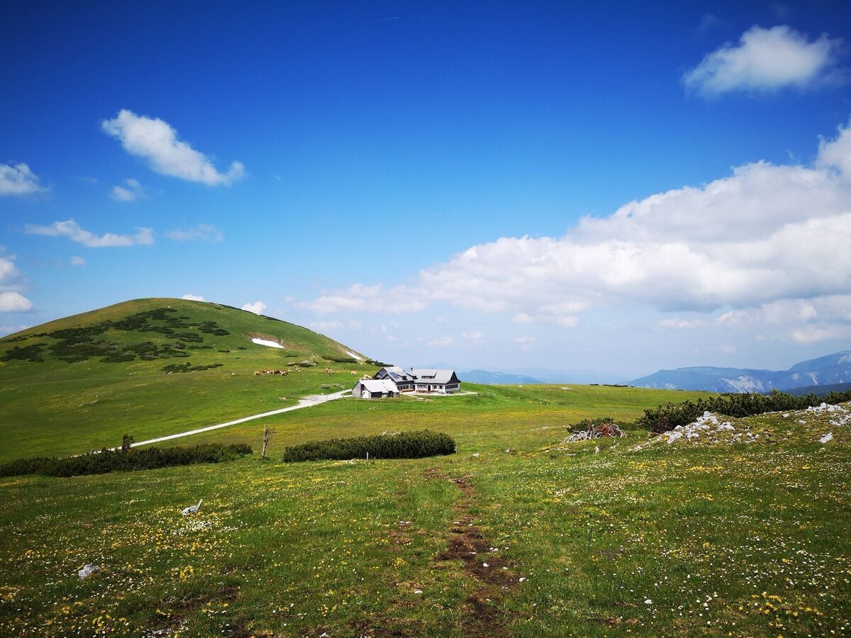 The descent leads toward the Michlbauerhütte, then across the plateau in the direction of the Lurgbauer alpine dairy. After a visit to the dairy, descend at the junction with a bench via the Almgraben (somewhat rocky in places) to Altenberg an der Rax.