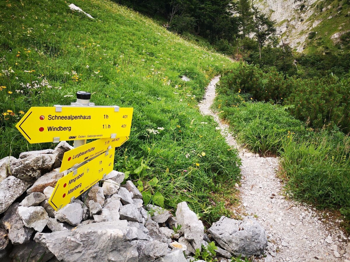 An alternative descent from the Windberg leads via the Schneealpenhaus and the Blarergraben to Altenberg an der Rax. The route is steep and includes a short secured section.