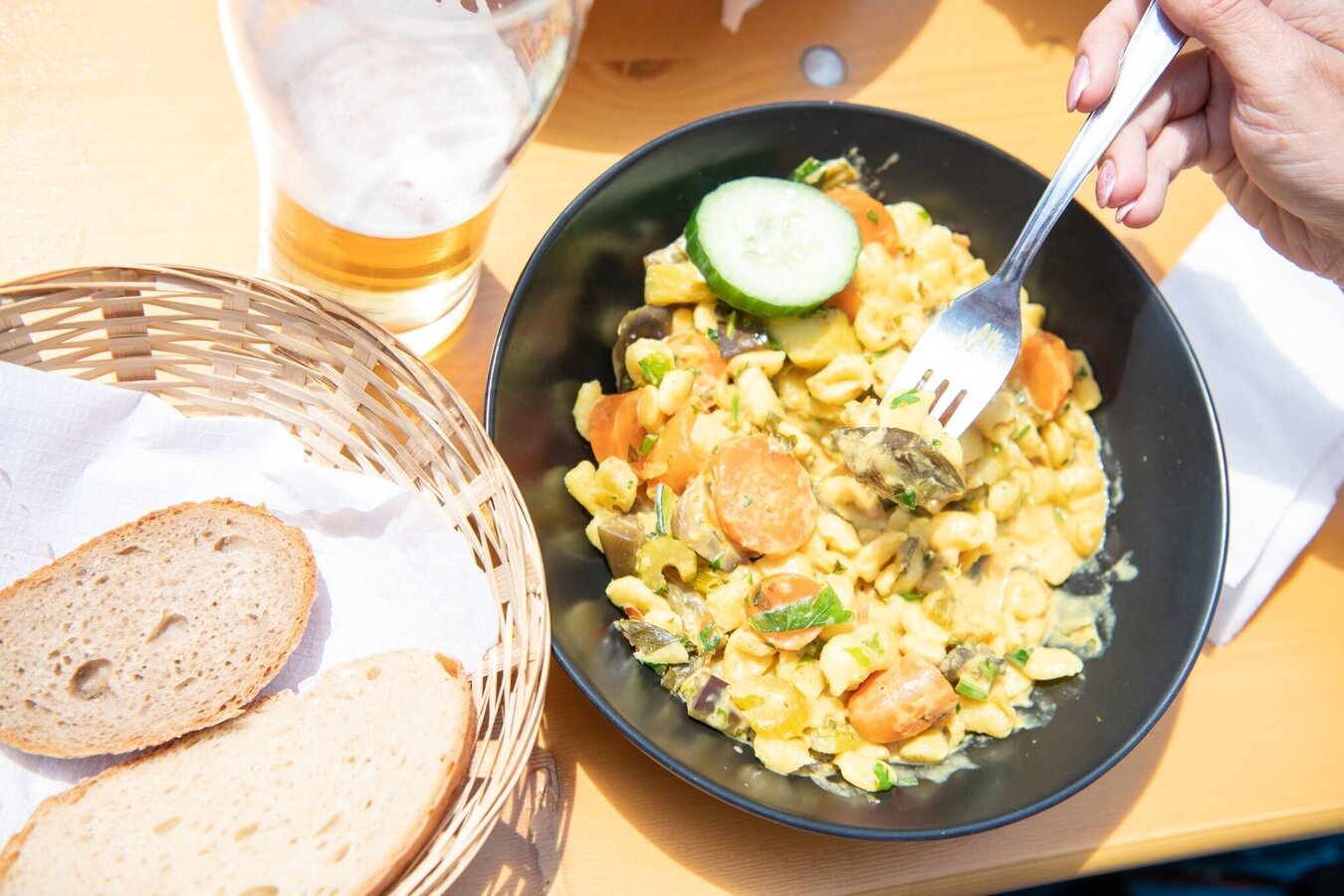 Starting from the Weitental Nature Conservation Center (Bruck Süd), you can hike or cycle to the Almgasthaus Schweizeben and then continue to the 1,308-meter-high Brucker Hochanger. From the summit, you can enjoy panoramic views extending to the Hochschwab and the Graz mountain region.