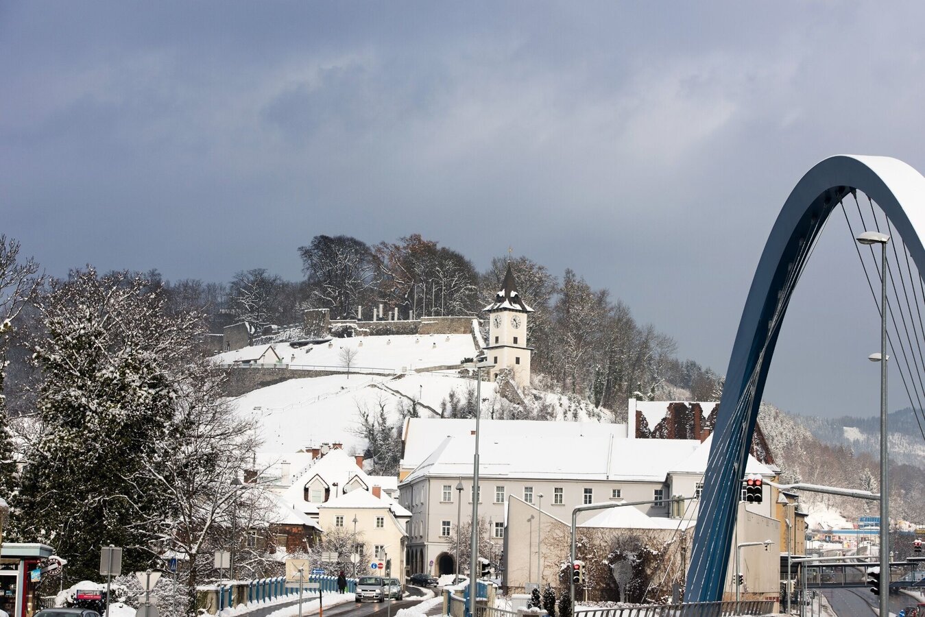 From the main square, first walk through the Old Town / Roseggerstraße to the Europabrücke. Cross over and go below the new roundabout (marked passage) into Weitental.