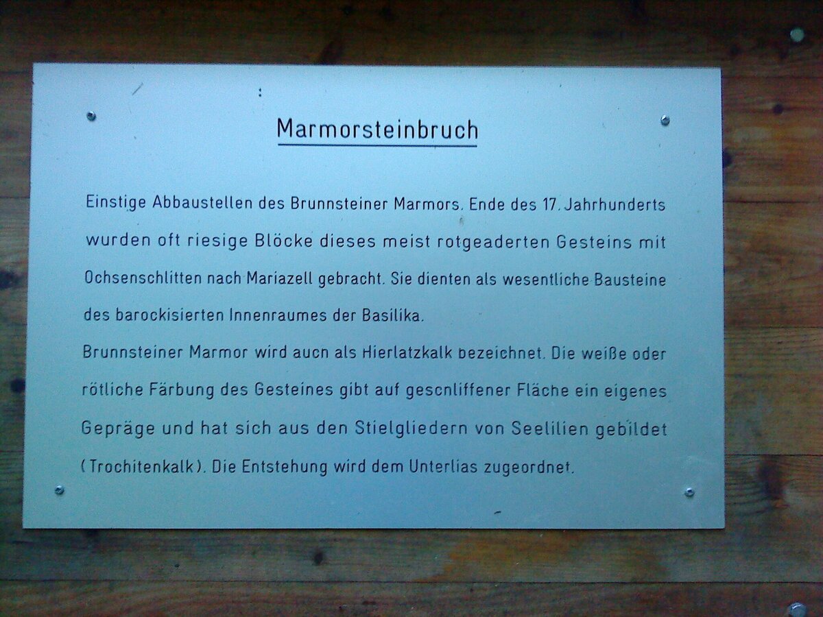 Following the hiking trail we reach the marble quarry (3rd legend board) and continue over the Iron Lord to the Halterhütte on the Brach. From there you can already see our destination - the summit of the Gemeindealpe at 1626 m, which we reach after about 50 min.