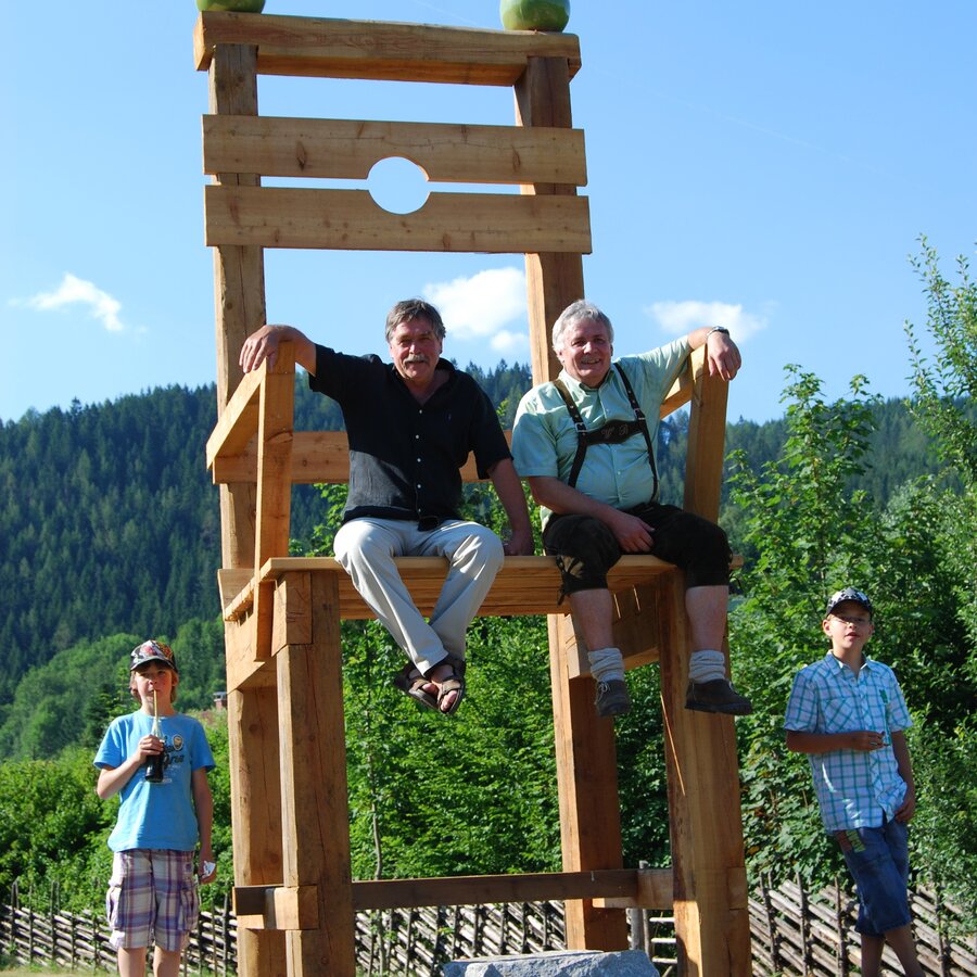Vom Berggasthof Schanz gehen wir die Straße Richtung Kindberg ca. 50 Meter bis zum Bachlerkreuz vor, wo unsere Markierung nach rechts zur Stanglalm weist. Jetzt geht's bergauf bis zum Europakreuz, daran vorbei führt unser Weg mit dem nächsten Ziel: dem sagenumwobenen Teufelstein oberhalb des romantischen Urlaubsdorfes Fischbach. Der Sage nach wollte hier einst der Teufel einen Turm in den Himmel bauen – und ist kläglich gescheitert.