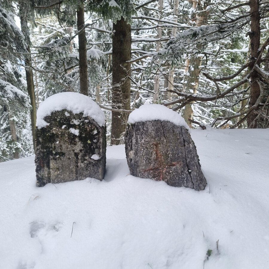 From Steinhaus, cross the transport road of the Semmering base tunnel construction site (the high wall can be bypassed on the right, with trail markings and guardrails). Immediately after, climb steeply through the forest above the road (hollow path, trail markings), following a sometimes hard-to-see trail, crossing a few forest roads, to a flat saddle northwest of Erzkogel (fallen trees, as of April 2024).