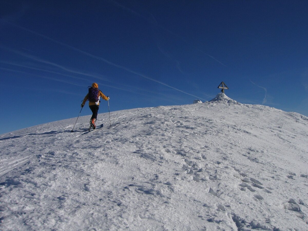 Abfahrt wie Aufstieg, im unteren Teil bei ausreichender Schneelage kurze Waldabfahrten möglich. Bitte keinesfalls Jungwälder befahren!