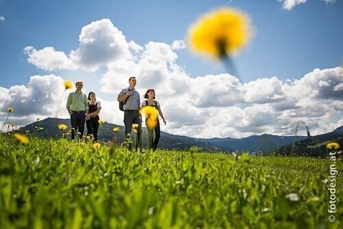 Wonderful views of the valley, farms lovingly decorated with flowers along the hiking trail. Afterwards, stop off at the Almwirt and enjoy many home-made, regional delicacies such as soup strudel with hearty beef soup, a sun salad or Buchteln with vanilla sauce. Ripperltage every first Friday of the month. Almwirt snack station