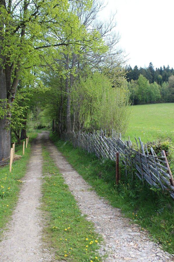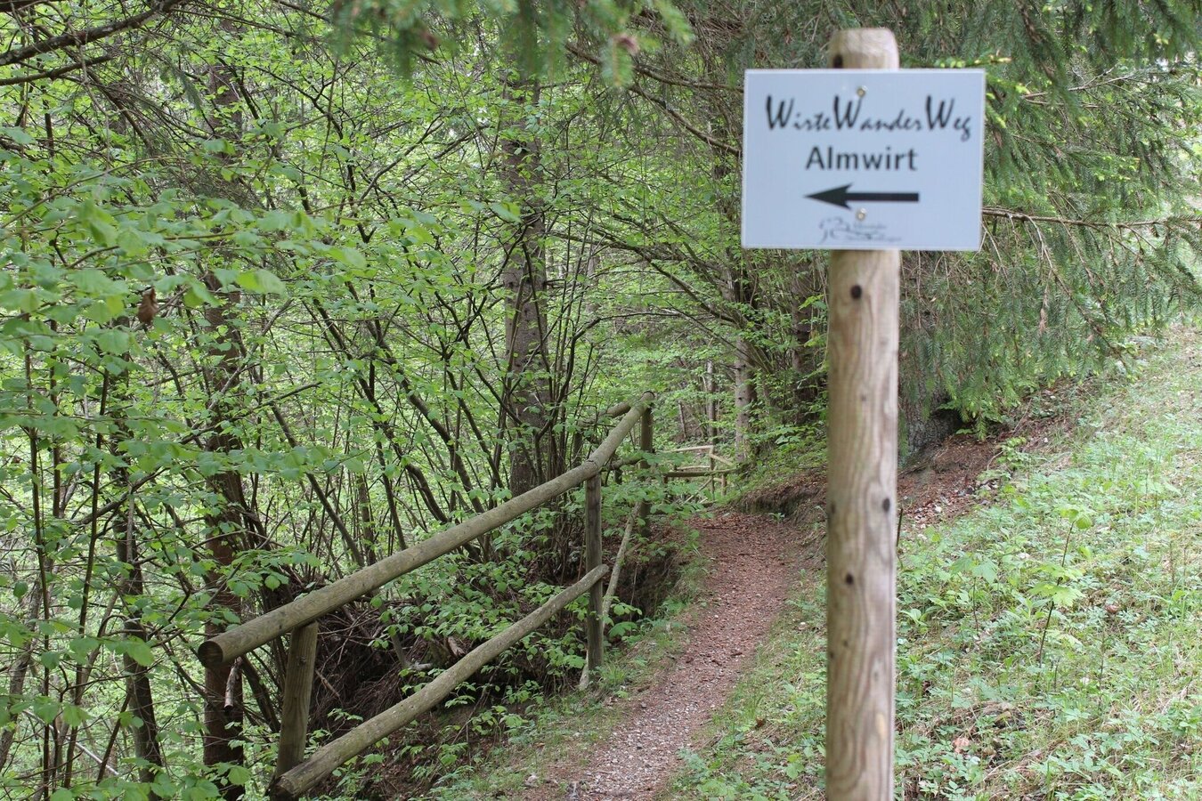 We follow the grey signs ‘WirteWanderWeg Almwirt’. We start at the Almwirt snack station and cross the main road after a few metres and follow the asphalt road, where we soon turn left onto the sandy road. We walk along the Stanzbach stream and continue over the bridge. The sandy road leads slightly uphill into the forest, where a path soon branches off to the left. Once again we follow the Stanzbach stream for a while. We follow the signposts and continue along the edge of the meadow until we come to a dirt track that leads us to the main road, which we cross. Signposts show us the way and we walk uphill along the tarmac road. After a short walk, we cross a small bridge where we find a fountain on the right-hand side that supplies us with fresh spring water. Continue along the tarmac road until the last section of the tarmac road begins after a sharp left-hand bend. We reach a crossroads with many signposts, our route leads us straight ahead onto a stretch of road with a marvellous view of the Unteralm valley. Very well-kept farmhouses, lovingly decorated with flowers in summer, line our path. We follow the tarmac road until it ends at a farm. We walk through the farmyard to pass through the gate on the mountain side, where a forest road begins. After turning left twice on the forest road, we reach the highest point of our hike. A path now leads us downhill.We walk along a ridge where the forest thins out and offers a marvellous view of the farms surrounded by lush meadows and the mountains all around.We can also see the lower valley again and the valley leading into Brandstatt.The path turns into a hollow path that leads down into the valley. This divides after a short while, we follow the left-hand path and soon come to a wider forest path, where we keep left again.We can already see a sculpture of the ‘Stanzer Sonnenweg’ in a spacious square. From here, part of the ‘Stanzer Sonnenweg’ and the ‘WirteWanderWeg Almwirt’ run along the same path.The signpost to the Almwirt snack station, which we will soon reach, makes us quicken our pace. A final, somewhat steeper section downhill through the forest follows and we reach a nice rest area in the forest, which invites us to take a break and help ourselves from the well-stocked ‘ground bar’ (a pit with a wooden lid containing bottles of drink).After refreshments, we return downhill along the road, which we can already see from here, back to the starting point of our hike.
