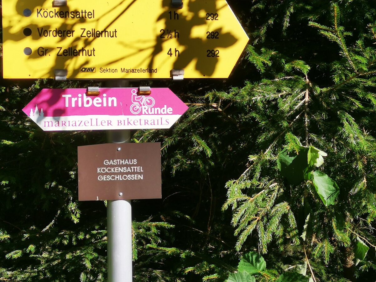 We start in St. Sebastian and drive on the B20 in the direction of Gußwerk until we reach Rasing. At the sawmill we turn right onto the B71 and drive to Teichmühle, here we turn left onto the forest road towards Köckensattel. At Köckensattel we follow the forest road to the left in the direction of Tribein and continue to Gußwerk.