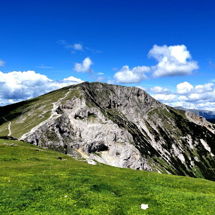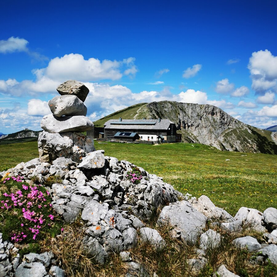 Nach Erreichen der Hochfläche ist der 2.007m hohe Gipfel der Rax (Heukuppe) mit dem prächtigen Panorama bis zum Dachstein nicht mehr weit. Am Karl Ludwig Haus sollte unbedingt eingekehrt werden (bio - zertifizierter Betrieb). Abstieg auch über den einfachen "Schlangenweg" möglich!