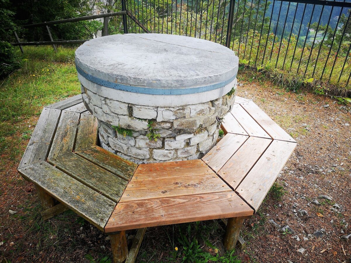 Here, a somewhat rocky path secured with wooden railings takes us uphill to the left to the summit with a large overview stone (faded) and a marvellous view of the imposing monastery. Be careful with children - danger of falling!
