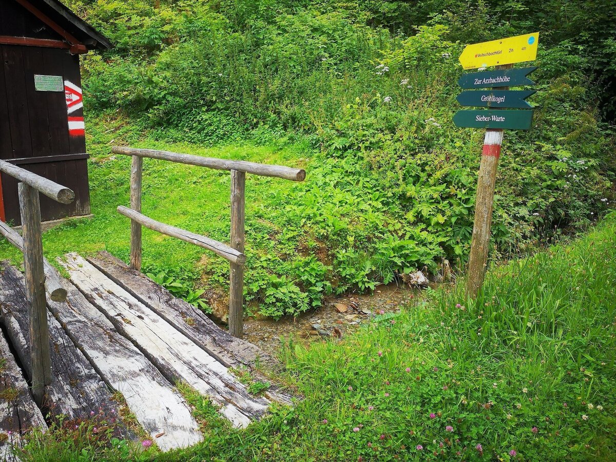 Just after the Mürz bridge (fitness trail), keep left and cross a small wooden bridge (signposted – caution: slippery when wet!). From there, follow the trail with a wooden railing uphill behind the ice hut.