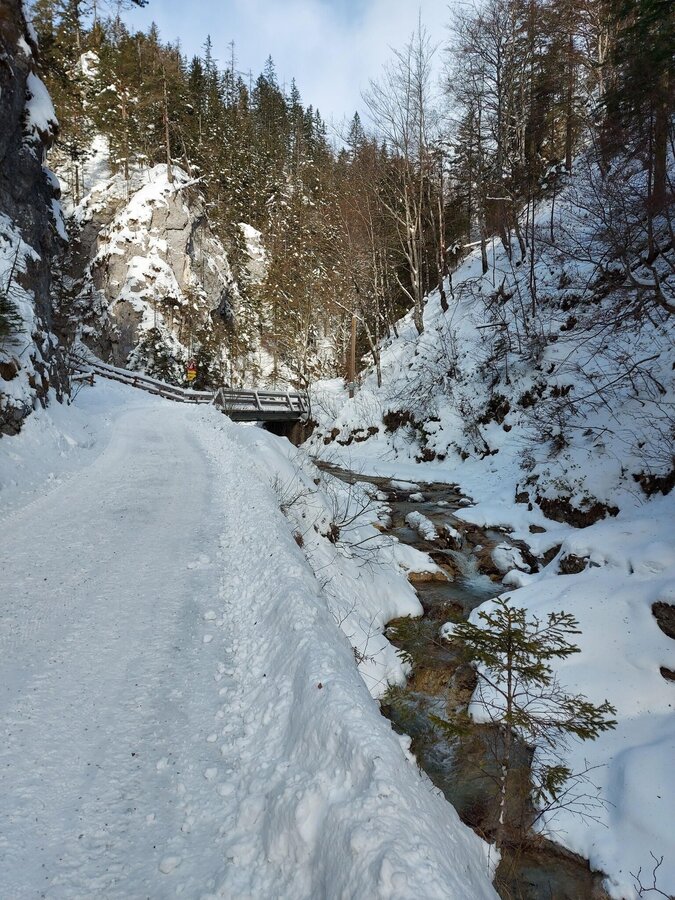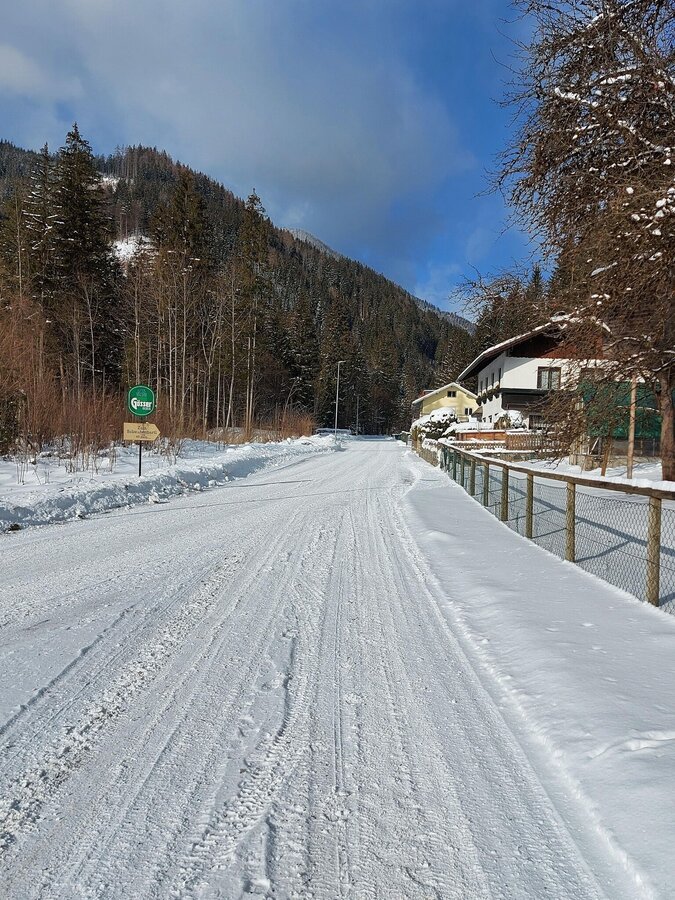 This leisurely hike takes us along a well-cleared municipal road into the Fölz. The gently ascending road into the Fölzgraben to the cozy Alpengasthaus Schwabenbartl is suitable for all age groups. Along the Fölz river, with a view of Fölzstein, we walk through a beautiful winter landscape. We enjoy the fresh air and look forward to a traditional Styrian snack, the famous "Ofenbratl" with semmelknödel and sauerkraut, or the "Bergsteigertorte" with coffee at the Schwabenbartl (Tel. 03861/3334, open year-round, closed on Wednesdays and Thursdays from December to April, and closed in November).