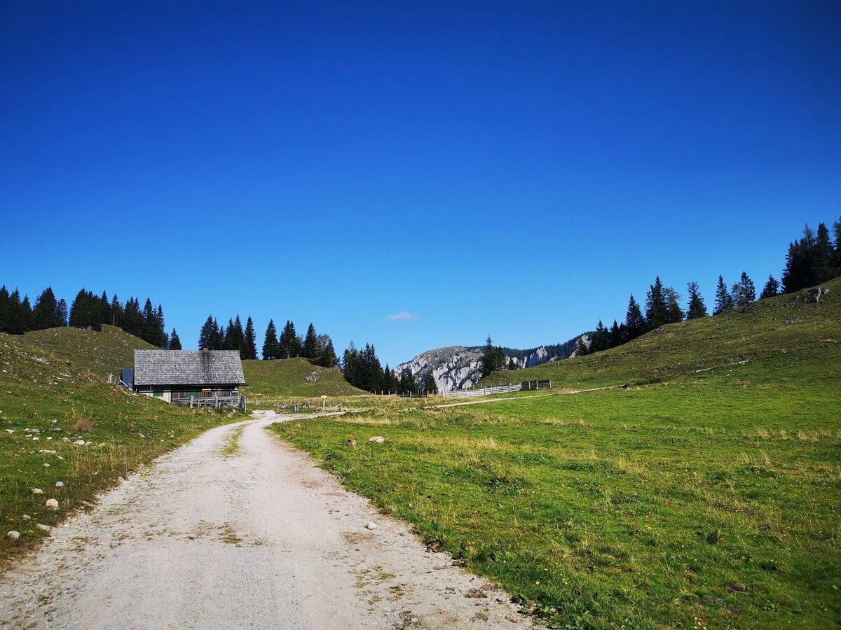 From the Weißalm, the trail continues along a road for about 20 minutes until you finally reach the alpine pasture at Ochsenboden. There is also a refreshment stop at Ochsenboden. From Ochsenboden the trail continues along a forest path for another 30 minutes to Herrenboden (Sennhütte on Herrenboden, Tel.: +43 (0) 676/325 41 50).