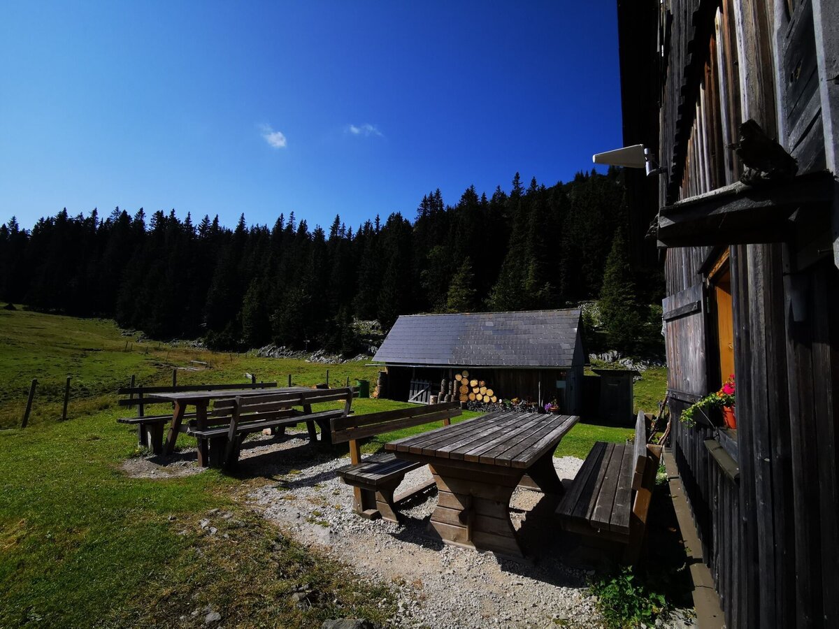 After the Herrenboden hut, do not follow the well-trodden path straight on, but branch off to the right through the meadow until you see a stone wall in the forest. (the path is not so easy to find, it is best to ask for the way again at the hut, where you will receive accurate and friendly information :) ).