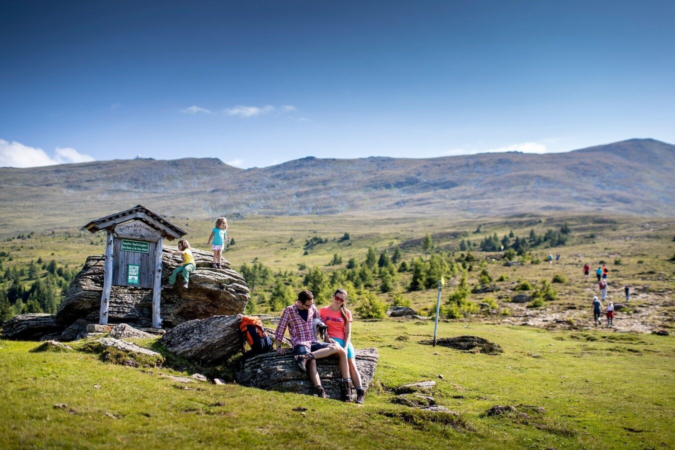 From the Tonnerhütte it goes to the Herderhöhe (1,800m), continue hiking to the Wanderertränke (2,000m) and to the Lavantseehöhe from there in an easterly direction to the Fuchskogel & Wildsee. From here it goes over the Rohrerhütte (.1854m) to the Stoanahütte (1.720m) - over the Judenburgerkreuz to the St. Martinerhütte (refreshment stop) from the St. Martinerhütte it goes with the hiking bus (please for advance booking under +43 (0) 3586 300 77) back to the Tonnerhütte.