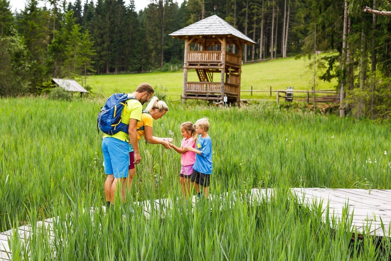 From Munich via the A8 towards Salzburg. From Salzburg on the A10 Tauernautobahn to St. Michael im Lungau. On the B 96 to Tamsweg, then on the B 95 to Predlitz. The B 97 leads via Stadl/Mur to Murau. There at the roundabout towards St. Lambrecht to Murauer train station and further towards St. Lambrecht. Via Laßnitz near Murau you reach St. Lambrecht, which is already in the nature park. From there continue towards Mariahof. Before the railway crossing turn right to Oberdorf / Mariahof.