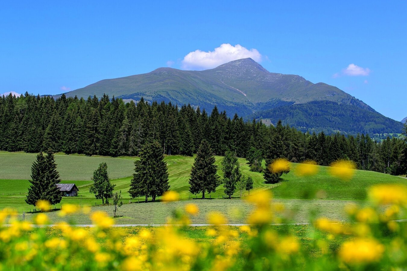 The Greimgipfel rewards visitors with a wonderful view, stretching as far as the Hochalmspitz and Dachstein on a clear day. To the south, you can even make out the silhouette of the Mittagskogel.