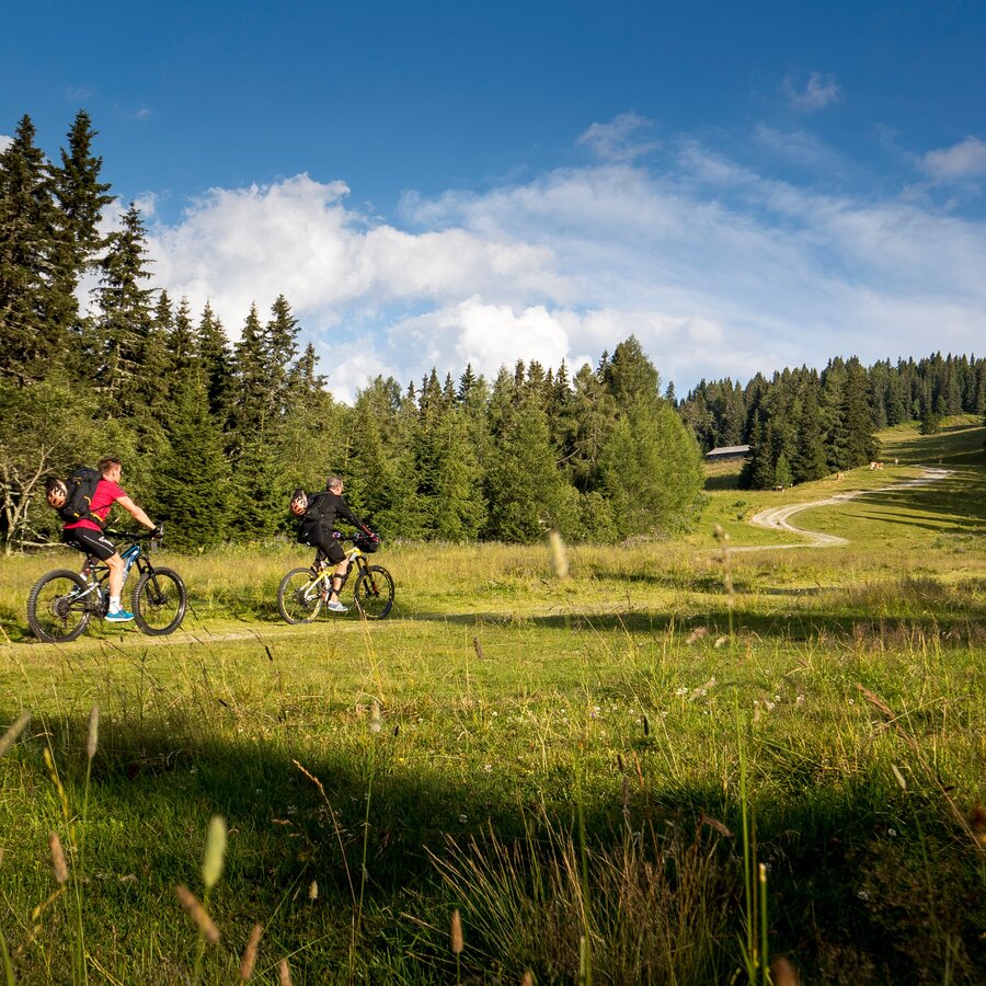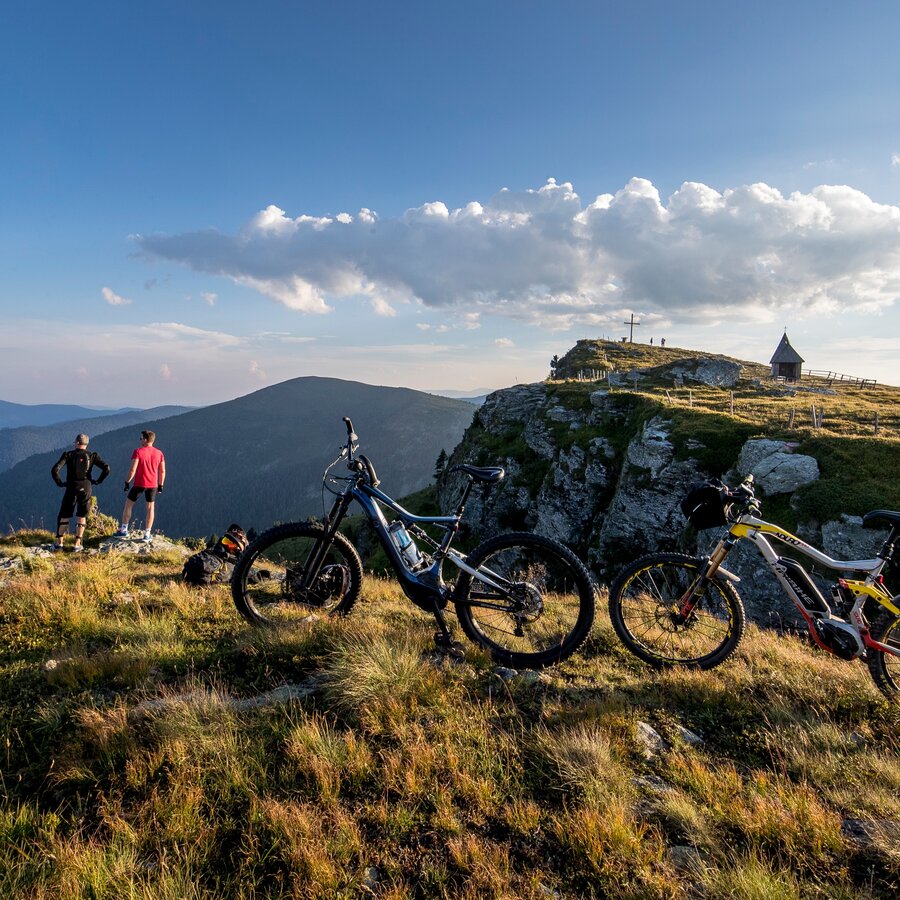 At the end of the road is the Murauer Hütte, from where a forest path leads to the Frauenalpe summit. After crossing the old pistes and pastures above the hut, turn right at the so-called "Käserei" after approx. 1 km. Accompanied by beautiful views and stone pine forests, the path leads to the summit. After a short, very steep ascent at the end, you reach the Bernhard-Fest refuge after approx. 3 km. From there it is approx. 150m to the chapel and finally, after a further 30m, you reach the Frauenalpe summit with a magnificent 360° panorama. On fine days, you can see as far as Slovenia.