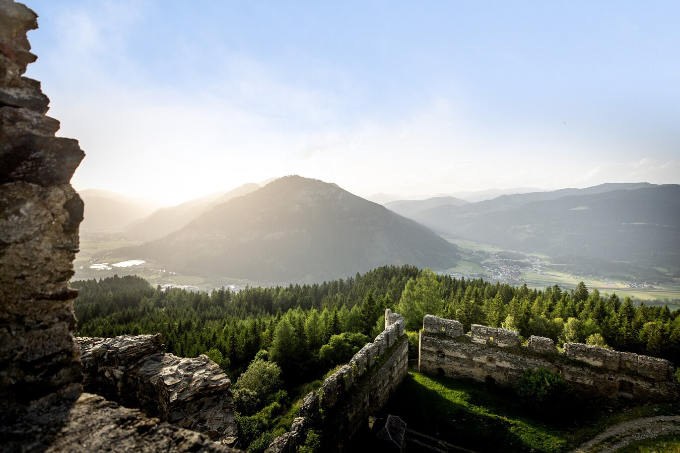 From the hiking starting point in the village of Perchau am Sattel, this path leads through meadows and forests up to the Kreuzeck-Höhe. From there it goes downhill again to the impressive and interesting Steinschloss castle ruins. Go into the castle ruins and explore the remaining walls. From there you can also marvel at the views of St. Blasen, the Thajagraben, the Wölzertal or the Murtal with Teufenbach and Katsch.