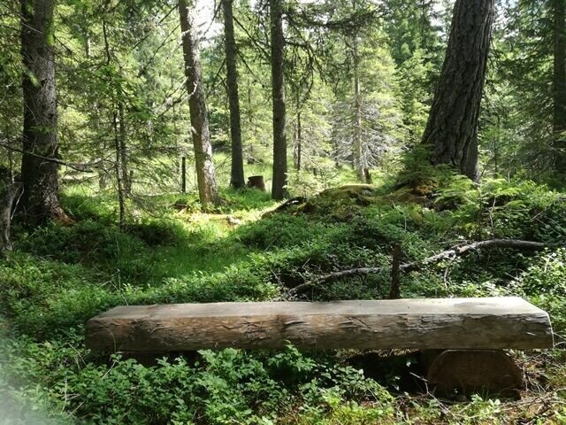 (3.1: above the high spring reservoir; 3.2: "route" towards the north - right into the forest; 3.3: "trasse" left into the forest, small clearing in the larch circle; 3.4: further north to the moor)
