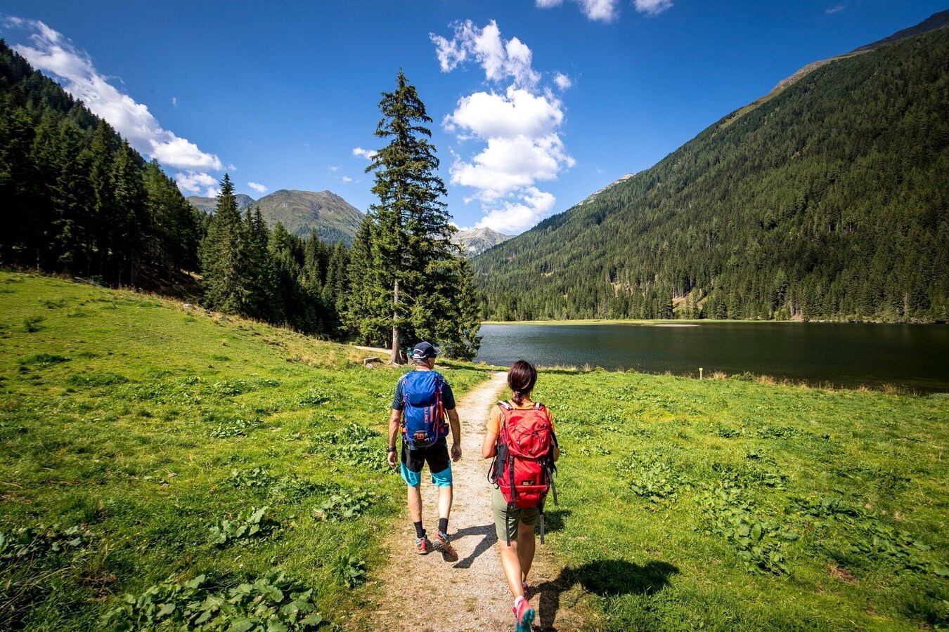 The way back is from the Rupprechteck moderately descending along a path to the south in the direction of Arfeld, 2,491m. The trail passes below the Arfeld summit, passes a pasture fence made of stones and crosses a mountain slope to the east to the Scharte, where the Brennerfeldeck/Rupprechteck and Etrachsee trails fork above the Schattnerhütte. From the Scharte, the trail leads to an idyllically situated small mountain lake, with views of the glaciated peaks of the Hochalmspitze and the Ankogel. Across steep alpine pastureland, past a wayside shrine, the trail leads to the tree line and on to the Schattnerhütte, 1,799m. Follow the forest road to the southeast, slightly descending to the stream. Continue on the forest road to the west in the direction of Etrachsee until you reach a right turn. Here the footpath leaves the forest road and leads slightly downhill through high forest terrain to the south-west until it crosses the forest road. The path continues over somewhat steeper high forest terrain over several serpentines to a forest road. Follow the forest road to the south (left) for about 300m until you reach a fork in the forest road. To the north-west (right) slightly descending, past an alpine pasture to the access road to the Etrachsee. Continue north (right) approx. 200m to the starting point "GH Etrachsee parking lot".