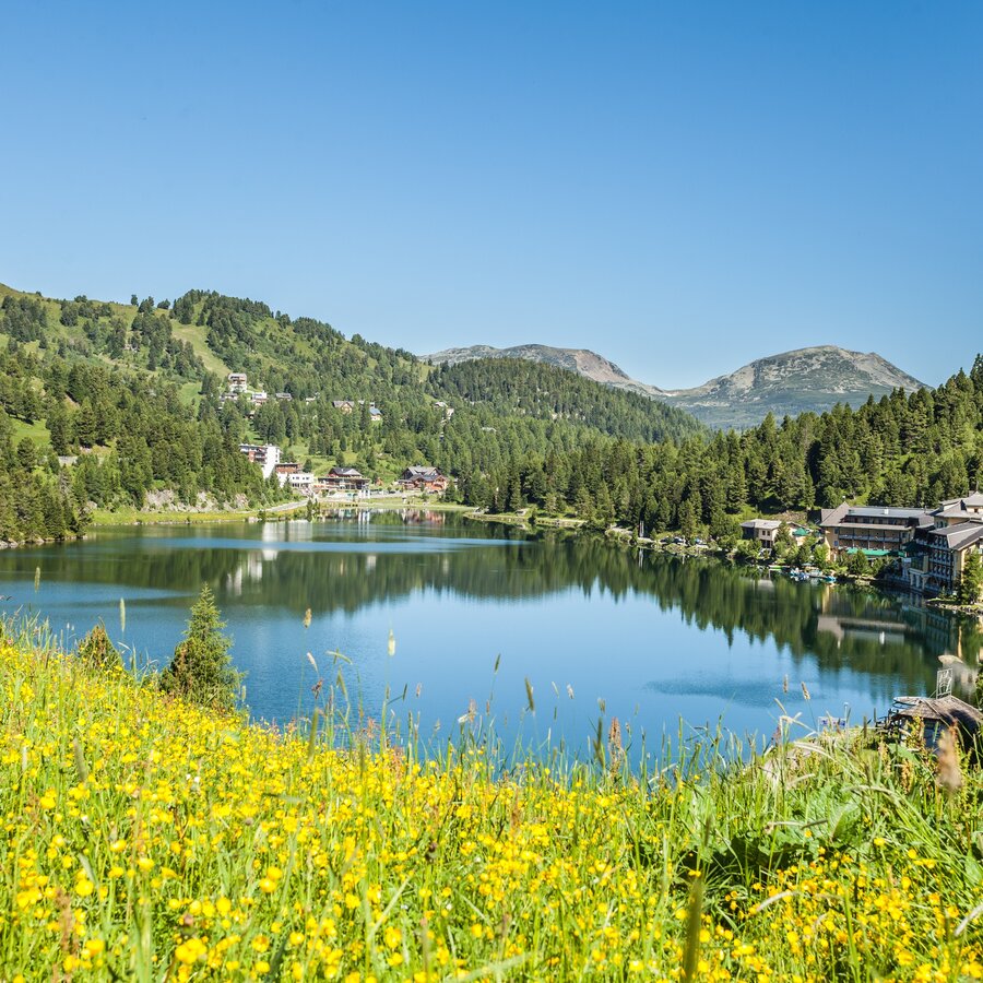 This tour starts at Turracher Höhe. Here you cycle downhill in the direction of Carinthia to Grünseeblick. Here you keep to the right and cycle through the forest, past the Karl and Hanneshütte huts, always following the tour downhill. Cycle past the Reichenau plain to the chapel of St. Lorenzen.
