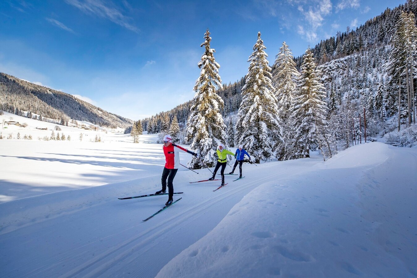 The Weirerteich cross country skiing trail rund from Weirerteich in the direction of St. Lambrecht.The cross-country skiing area Laßnitz - Lambrecht, which has been awarded the Styrian cross-country skiing seal of approval, offers 4.1km of classic and skating trails. The Weirerteich cross-country ski trail is 100% snow-sure becaus of a snow-making system.