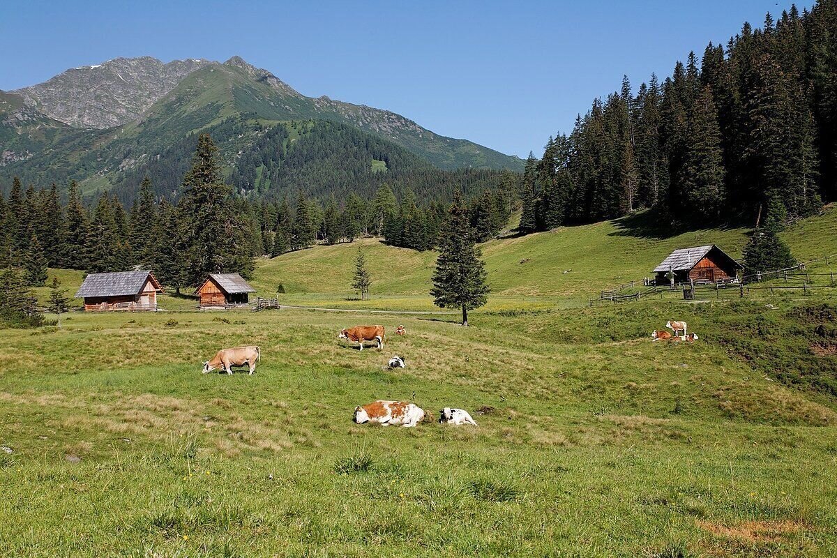 The starting point of the tour is the parking lot at the pile-dwelling village. From here continue to the tollbooth. Turn right before the tollbooth, now always follow the Hohentauern bike tour signs. Now it goes steeply uphill again and again, then you come to a fork, turn right and ride about 300m to the alpine pasture. After a flat stretch it now goes to the toll road and there is the possibility also here turn right in the direction of Edelrautehütte.