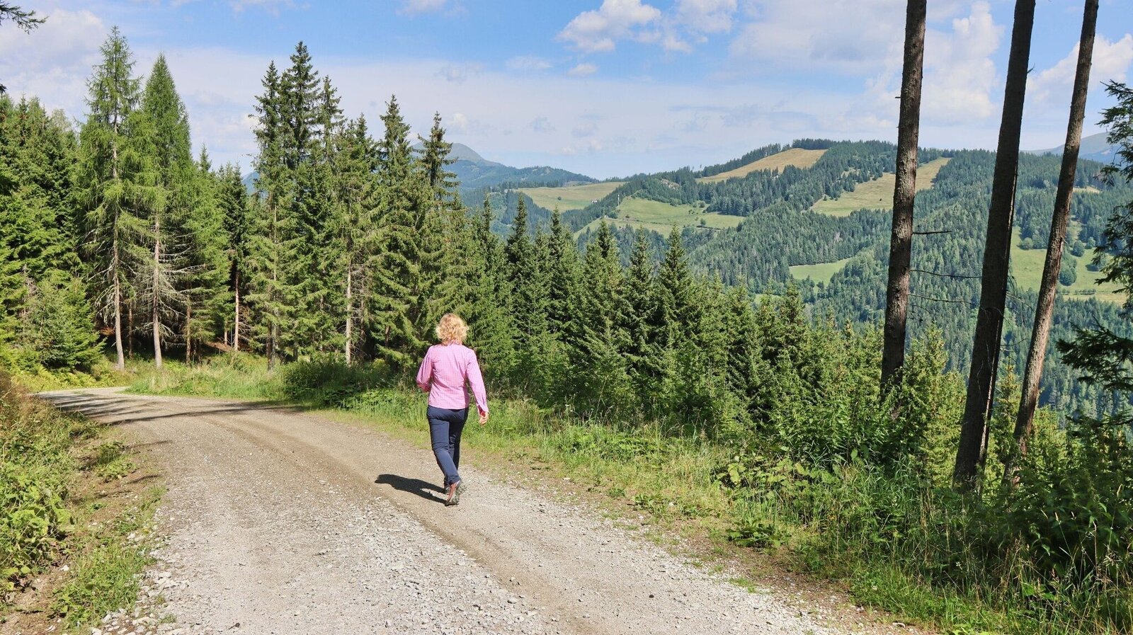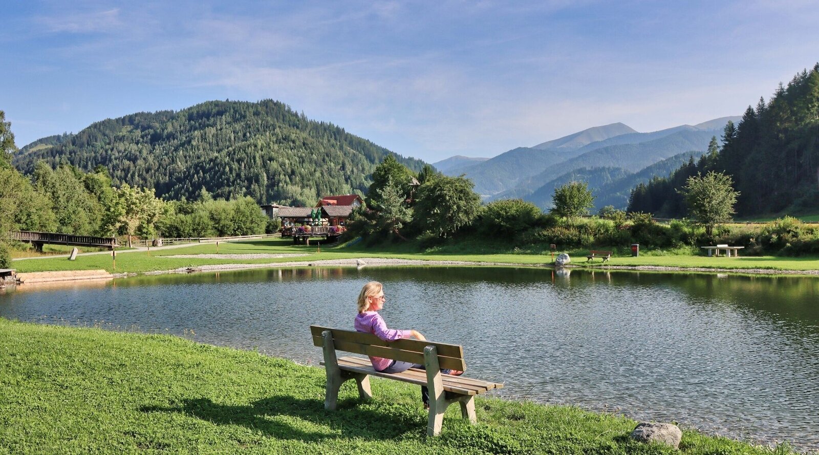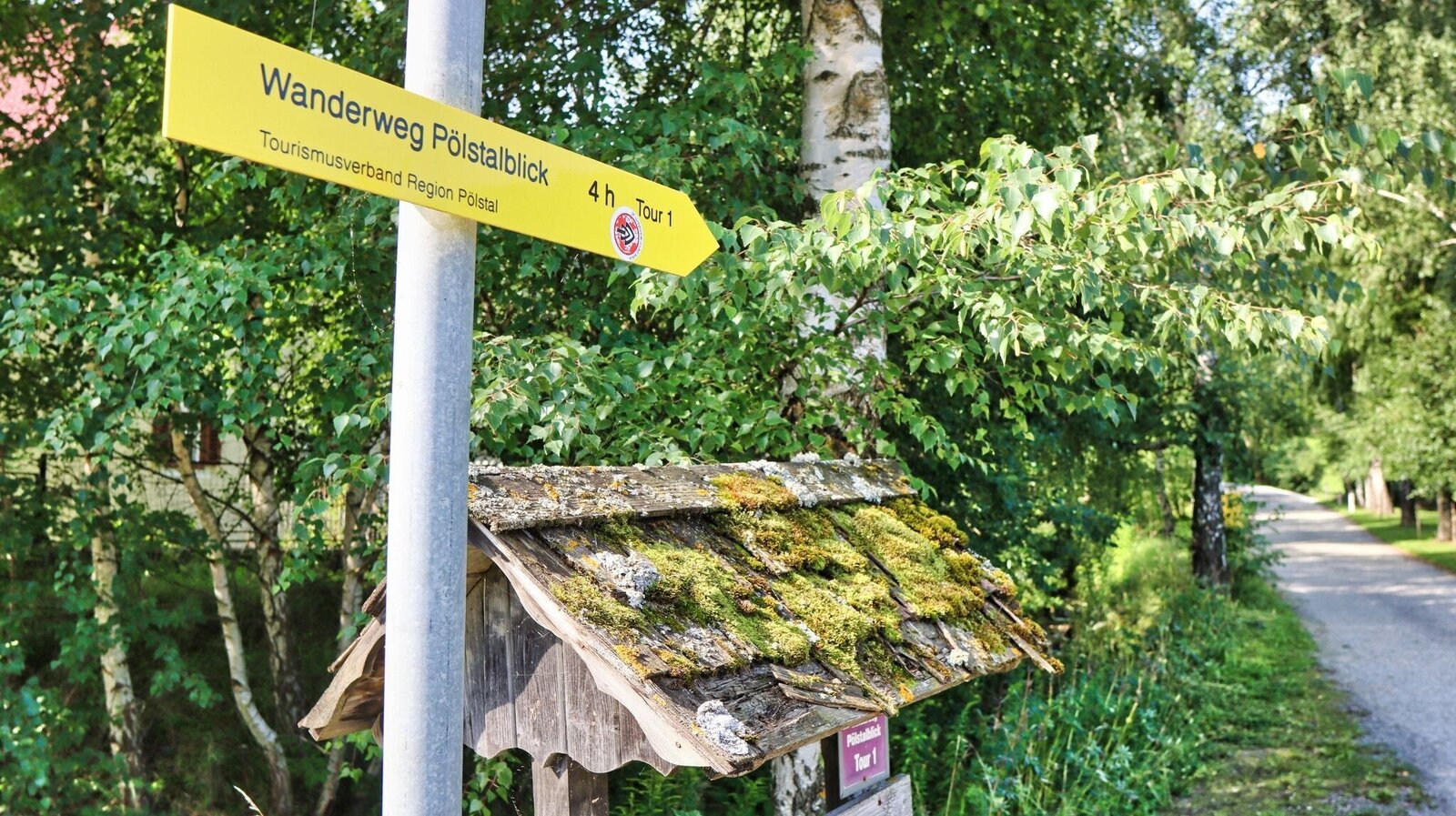 We start at the parking lot of the ADEG store in Möderbrugg (1), 912 m. Over the wooden bridge we come to the leisure and landscape pond complex St. Oswald-Möderbrugg. Passing the pond facilities, we walk downstream along the asphalt sidewalk. We cross the road and follow the path that leads directly next to the Pöls river until we reach the 24-hour farm store Adelwöhrer. A look inside the store is definitely recommended. The hiking trail continues to the right on the gravel road, along the Pöls. Cross the bridge and head towards the main road or Hotel Restaurant Timmerer (2), 905 m. Arrived at the federal road, we keep to the right and follow the road for about 300 meters, before we turn left into a side road. We now follow the road for about 3 km through the Möderbach ditch. Arrived at a sharp right turn, we go uphill following the road and immediately see a large pasture gate on the right. Here we leave the road and hike comfortably uphill on forest roads - partly through pastures - for about 2 km. We reach a clearing (3), 1302 m, with a pond and a hut. Here we have reached our highest point. We continue on the forest road slightly downhill until we pass a gate shortly after the Straller hut. After a short while we come to the meadow areas around the Schneebergerhaus and the associated chapel. At the Schneeberger chapel (4), 1202 m, we take our time and enjoy the wonderful view. The hiking trail leads down into the valley via the access road, although there is also a steeper shortcut from the chapel to Möderbrugg. Both paths lead directly to the center and thus to our starting point.
