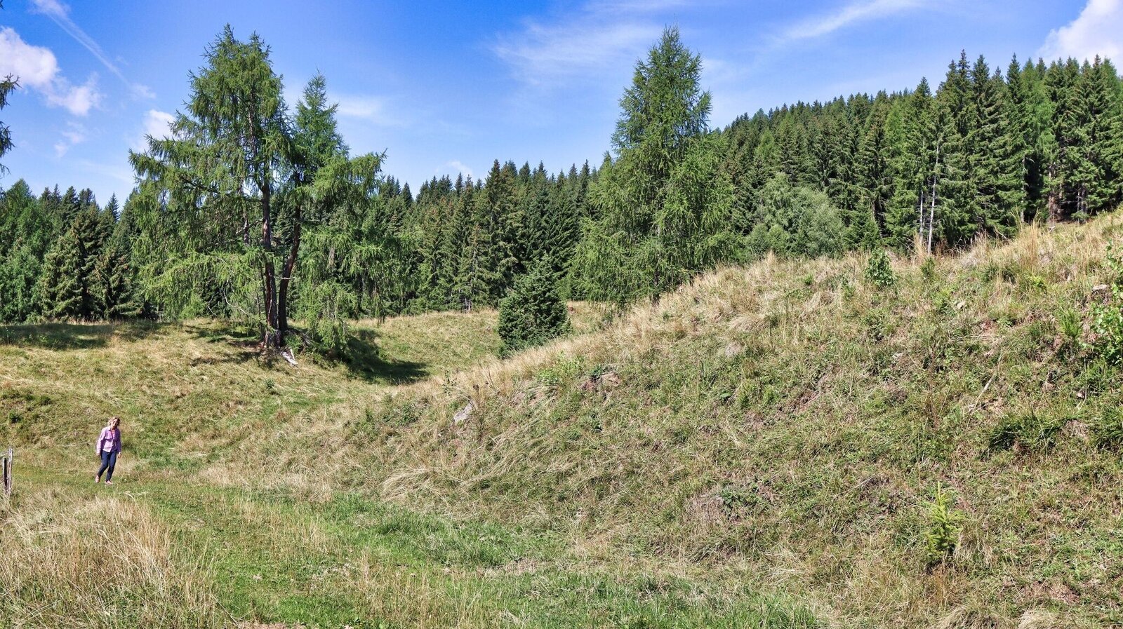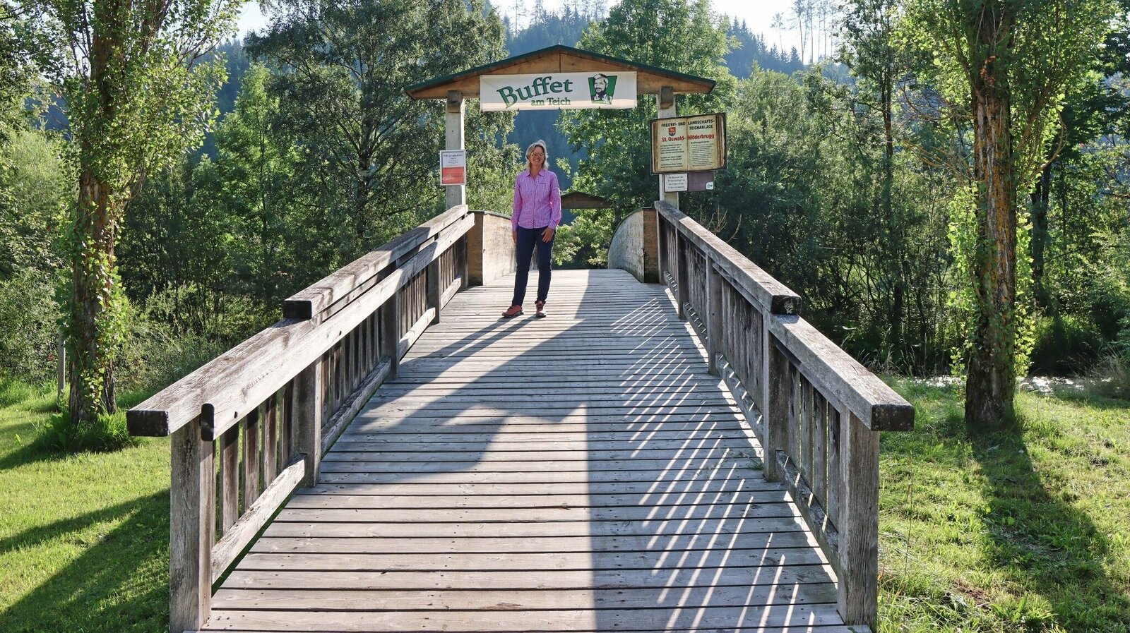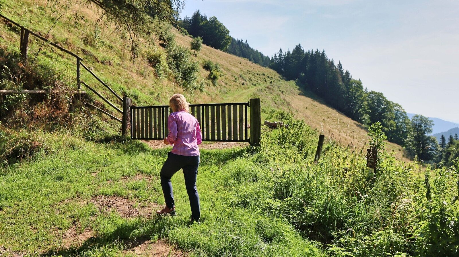 We start at the parking lot of the ADEG store in Möderbrugg (1), 912 m. Over the wooden bridge we come to the leisure and landscape pond complex St. Oswald-Möderbrugg. Passing the pond facilities, we walk downstream along the asphalt sidewalk. We cross the road and follow the path that leads directly next to the Pöls river until we reach the 24-hour farm store Adelwöhrer. A look inside the store is definitely recommended. The hiking trail continues to the right on the gravel road, along the Pöls. Cross the bridge and head towards the main road or Hotel Restaurant Timmerer (2), 905 m. Arrived at the federal road, we keep to the right and follow the road for about 300 meters, before we turn left into a side road. We now follow the road for about 3 km through the Möderbach ditch. Arrived at a sharp right turn, we go uphill following the road and immediately see a large pasture gate on the right. Here we leave the road and hike comfortably uphill on forest roads - partly through pastures - for about 2 km. We reach a clearing (3), 1302 m, with a pond and a hut. Here we have reached our highest point. We continue on the forest road slightly downhill until we pass a gate shortly after the Straller hut. After a short while we come to the meadow areas around the Schneebergerhaus and the associated chapel. At the Schneeberger chapel (4), 1202 m, we take our time and enjoy the wonderful view. The hiking trail leads down into the valley via the access road, although there is also a steeper shortcut from the chapel to Möderbrugg. Both paths lead directly to the center and thus to our starting point.