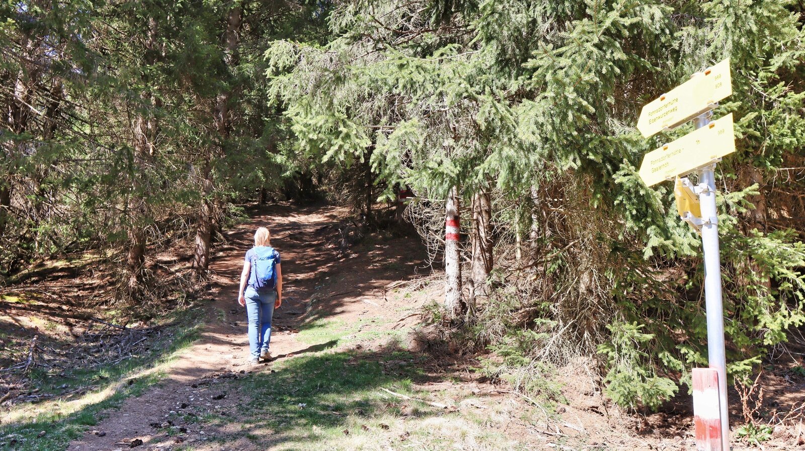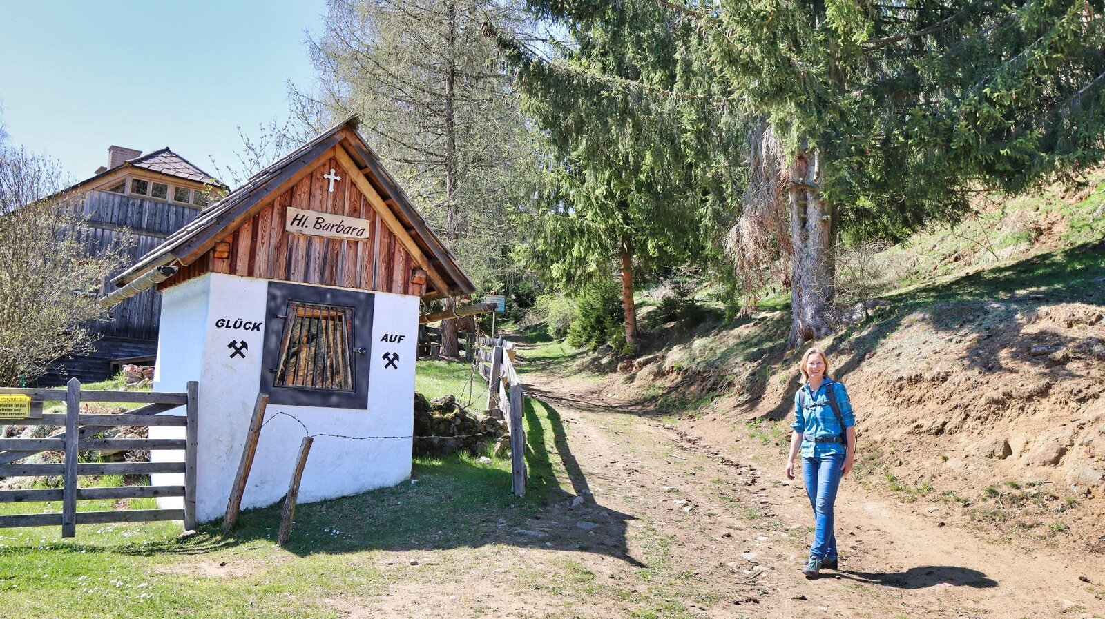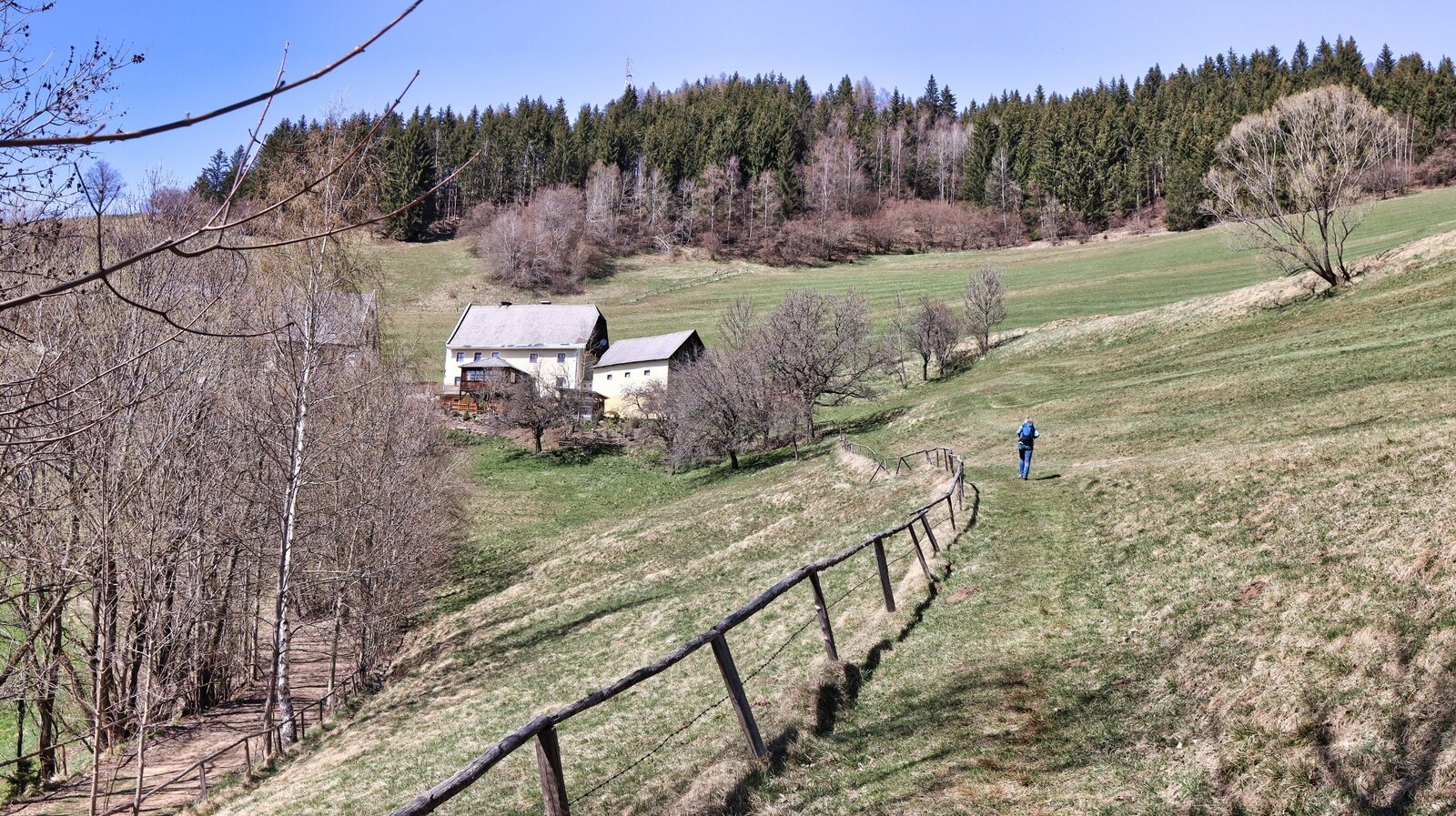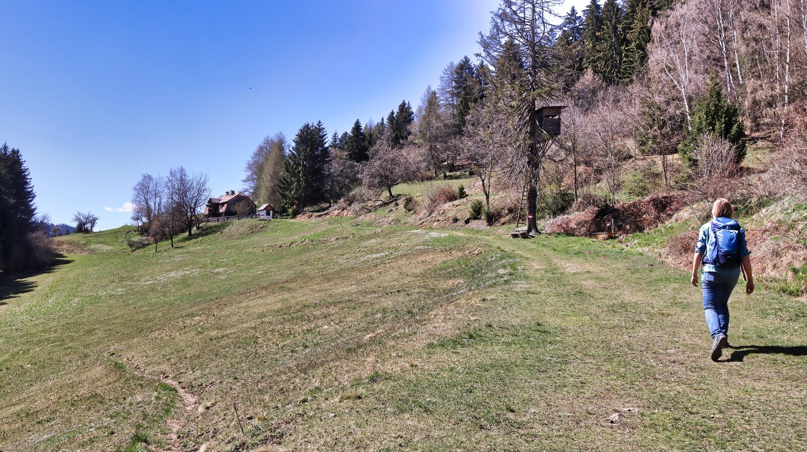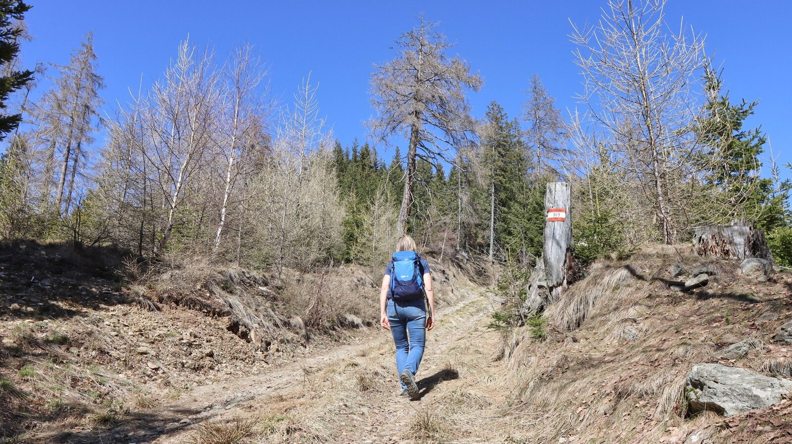 At the main square in Fohnsdorf (1), 736 m, we follow the yellow signposts and walk past the church, slightly uphill for approx. 200 m, then turn left into Bergmanngasse. We stay on Bergmanngasse until we reach the Hochwiesenweg junction. Continue straight ahead along Auerlingstraße until you reach the Sonnenweg junction, where you turn right and continue slightly uphill. Immediately afterwards we see the trail markings and the entrance (2), 773 m, to the long-distance hiking trail 08. We turn right, walk a few metres along the asphalt road and then turn left through a wooden gate. Along the meadow and further on through the populated area we come to the beginning of the Dietersdorfergraben and thus to a hiking trail junction. Here we turn left and immediately right again slightly uphill, following the tarmac road through the populated area of Dietersdorf and directly reaching the start of the path in the direction of the themed trail "In the footsteps of Hödlmoser". We always orientate ourselves along trail number 989 and walk uphill through the forest and then across a meadow to the Barbara Chapel (3), 899 m, and thus to the start of the themed trail. The first information board or entrance board is only a few metres away. This is followed by a beautiful section through the forest along a hollow path. We pass several information boards, reach a forest road and follow it to the left. At the "Zu guter Letzt" information board, we turn right and follow the path to the Stoxsreiter snack station (4), 1007 metres. We walk right past the buildings and come to a wide gravel road, which we now follow uphill for just over 2 kilometres. At a forest road junction on the left - clearly recognisable by yellow signposts - we see the start of the path towards Fohnsdorfer Hütte. This is followed by a steeper section, mainly through the forest, with some beautiful views in between. We cross a forest road, but more or less always stay in an uphill line and soon reach our destination - the Fohnsdorfer Hütte (5), 1490 metres. The way back is via the ascent route.